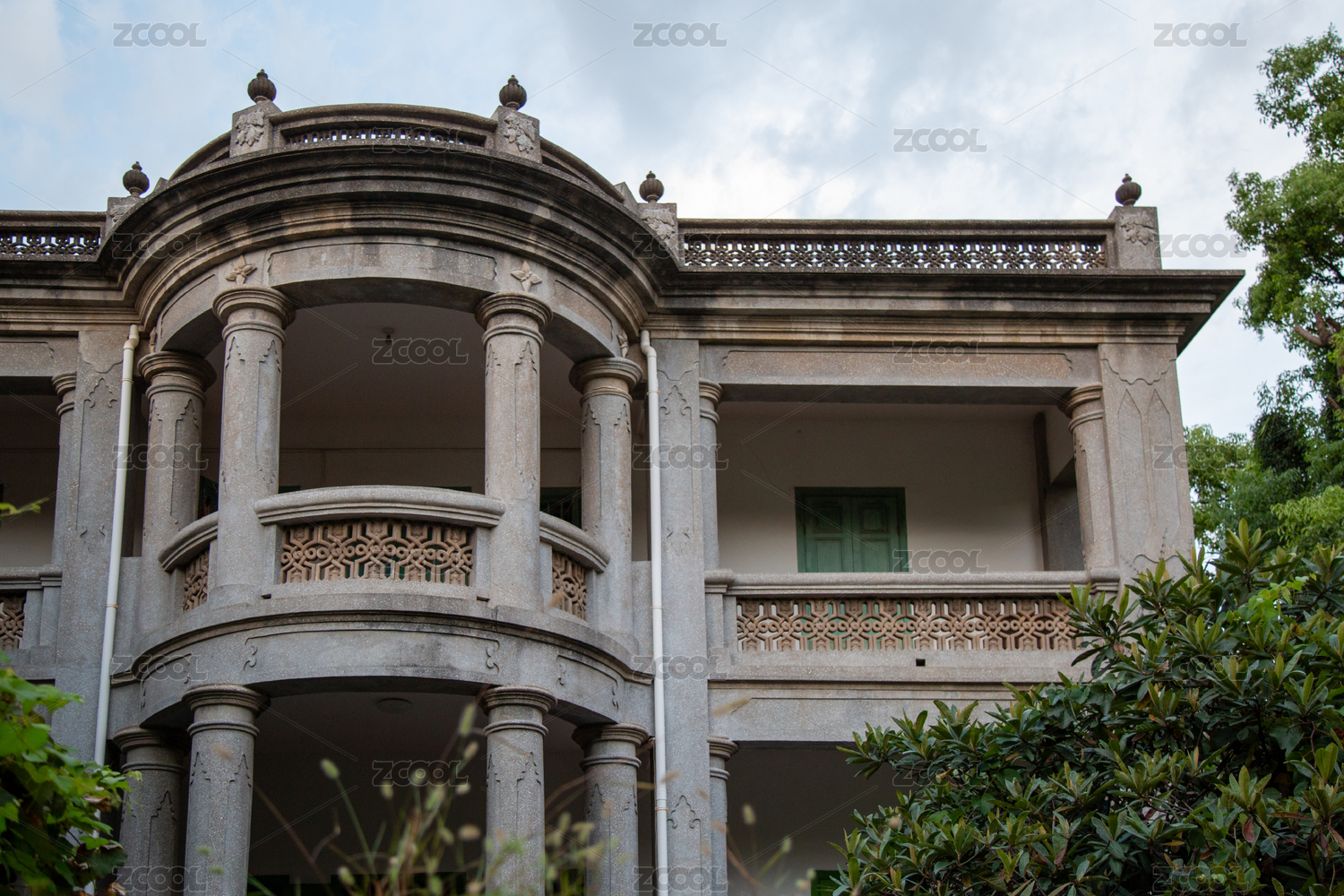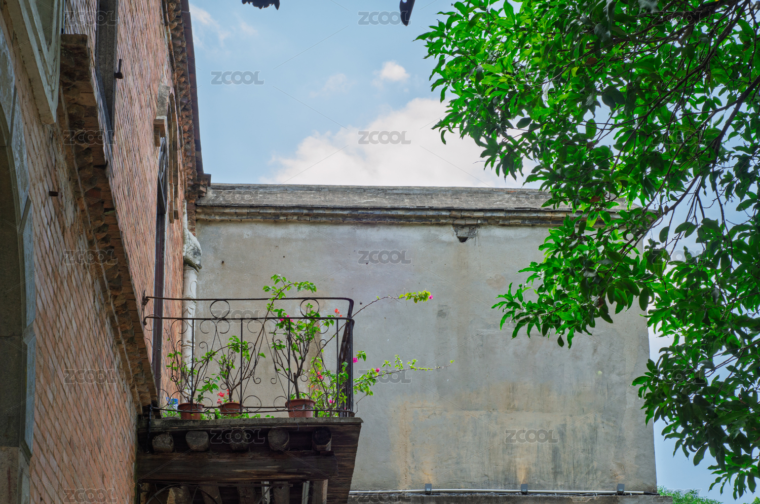 福州上下杭帶綠植盆栽的老式建筑陽(yáng)臺(tái)