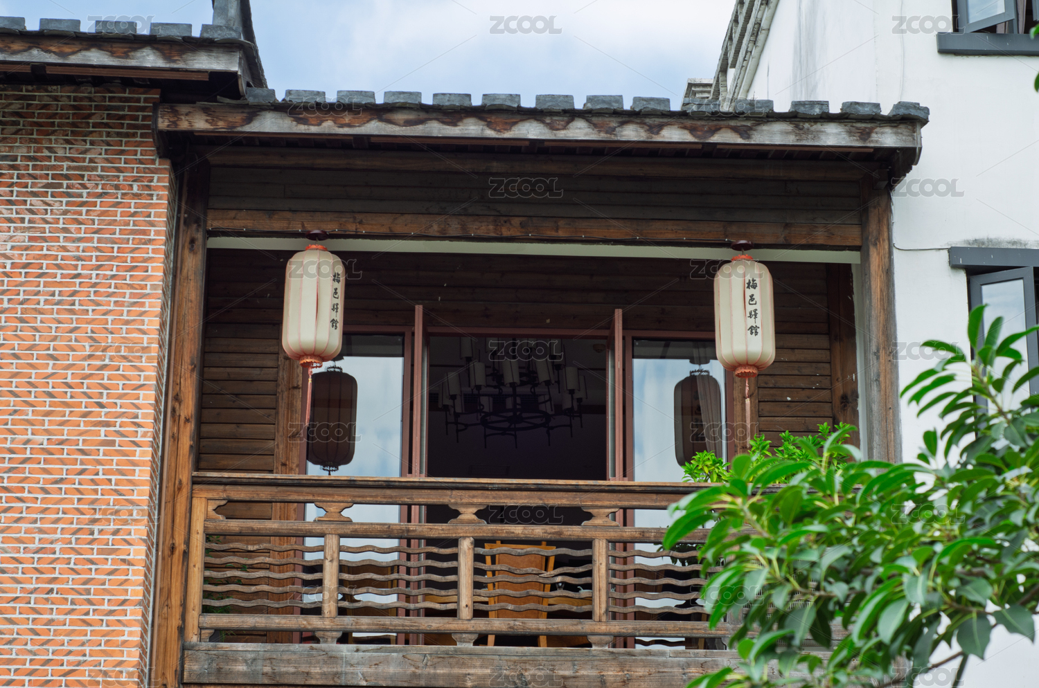福州上下杭中式木質(zhì)陽(yáng)臺(tái)與燈籠景觀