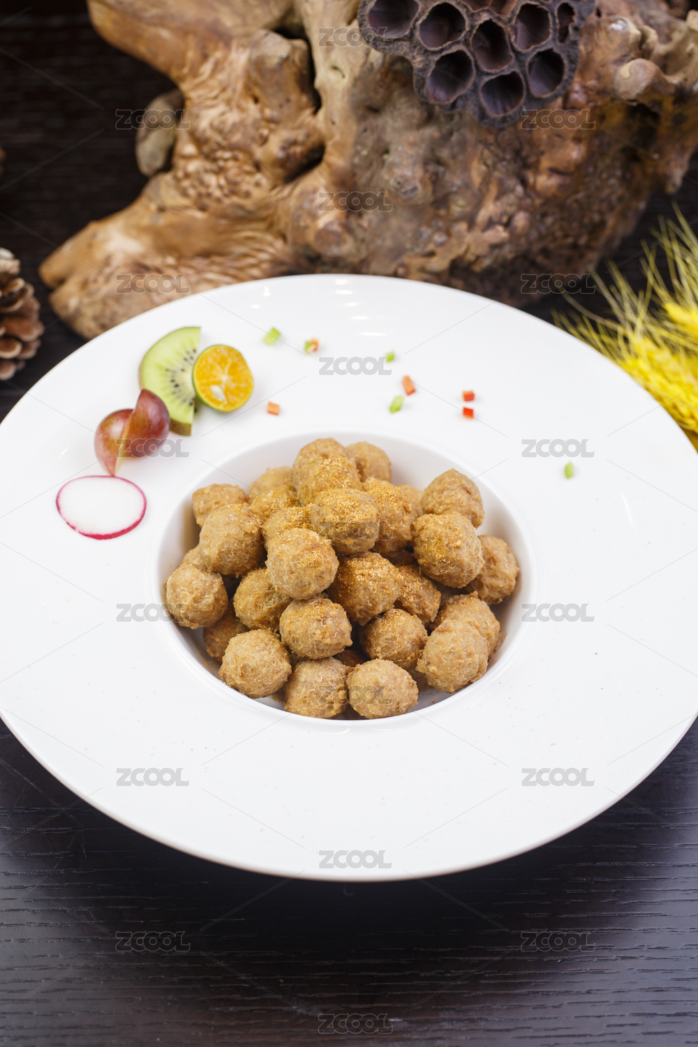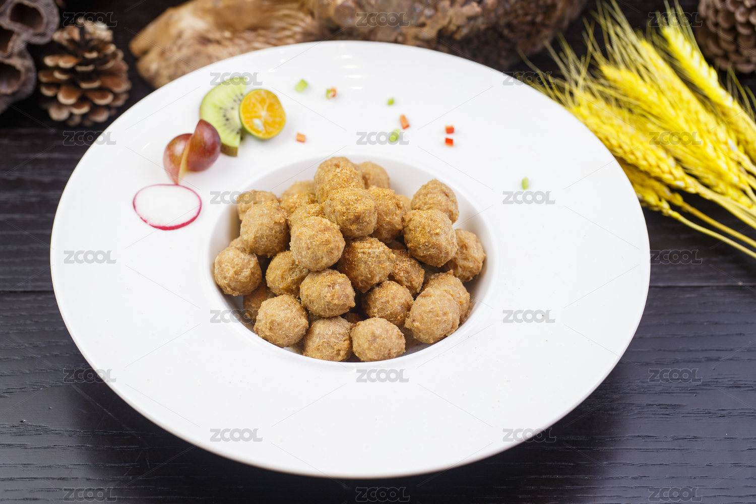 撒粉干炸肉丸子