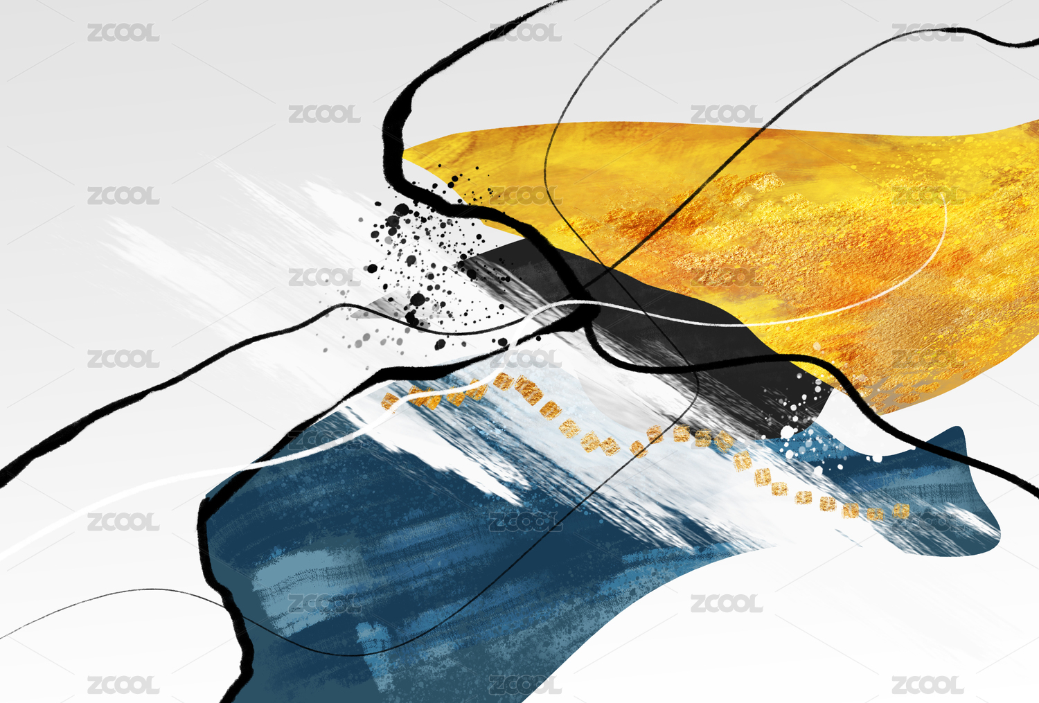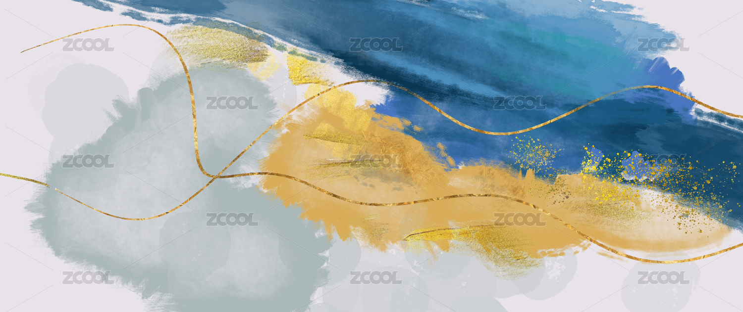 手繪金色抽象色塊筆觸寫(xiě)意印象背景裝飾畫(huà)