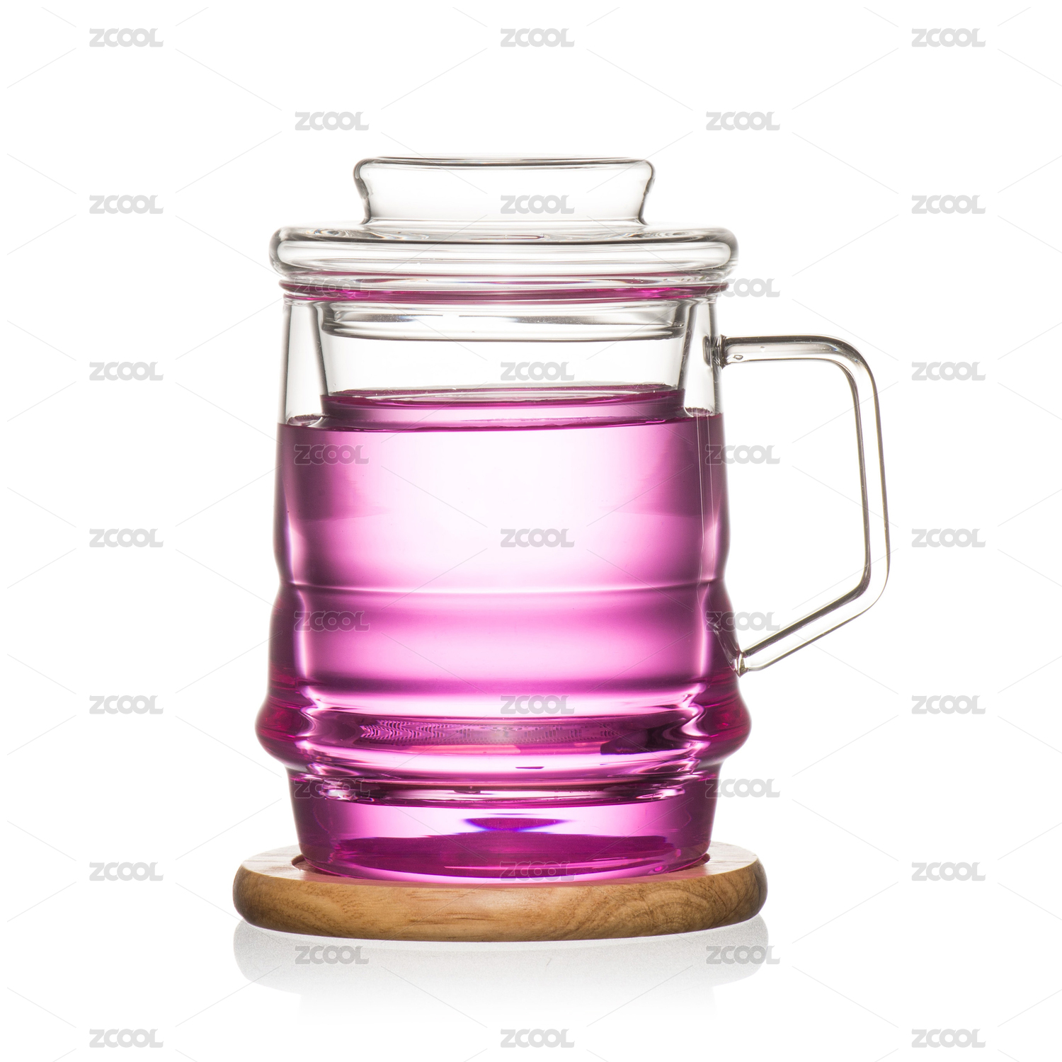 精致的玻璃茶壺中粉色的飲料在白色背景前
