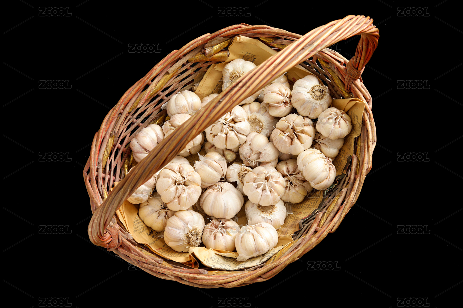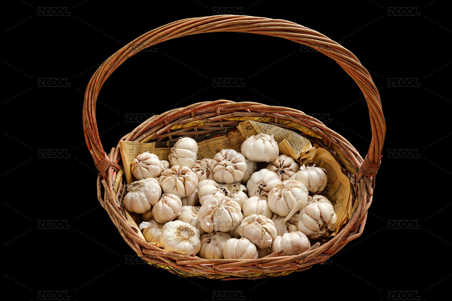 黑色背景上一籃子農(nóng)民豐收的農(nóng)產(chǎn)品大蒜蒜頭