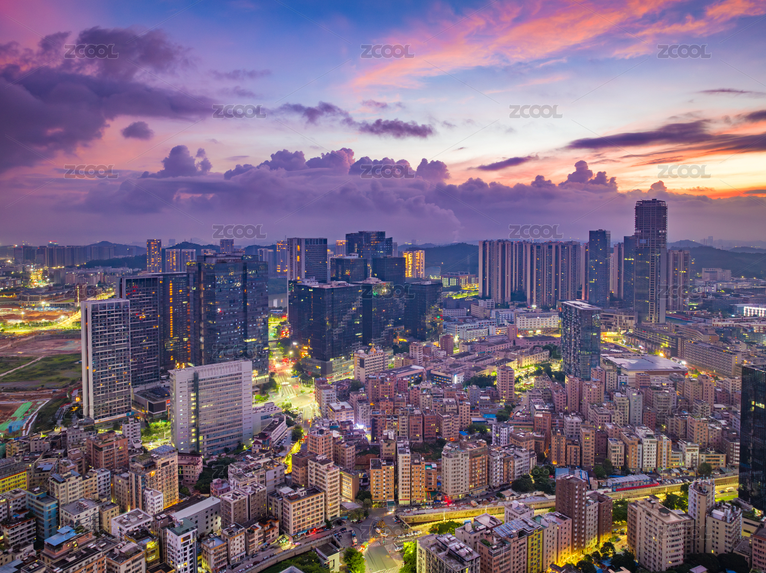 廣東深圳坂田天安云谷晚霞夜景