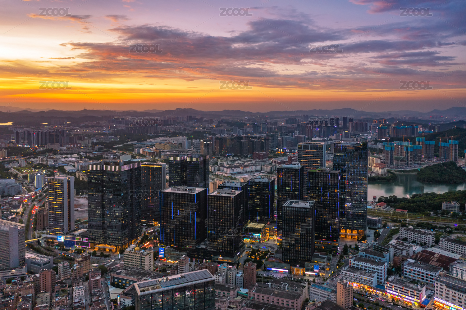 廣東深圳坂田天安云谷天際線火燒云晚霞夜景