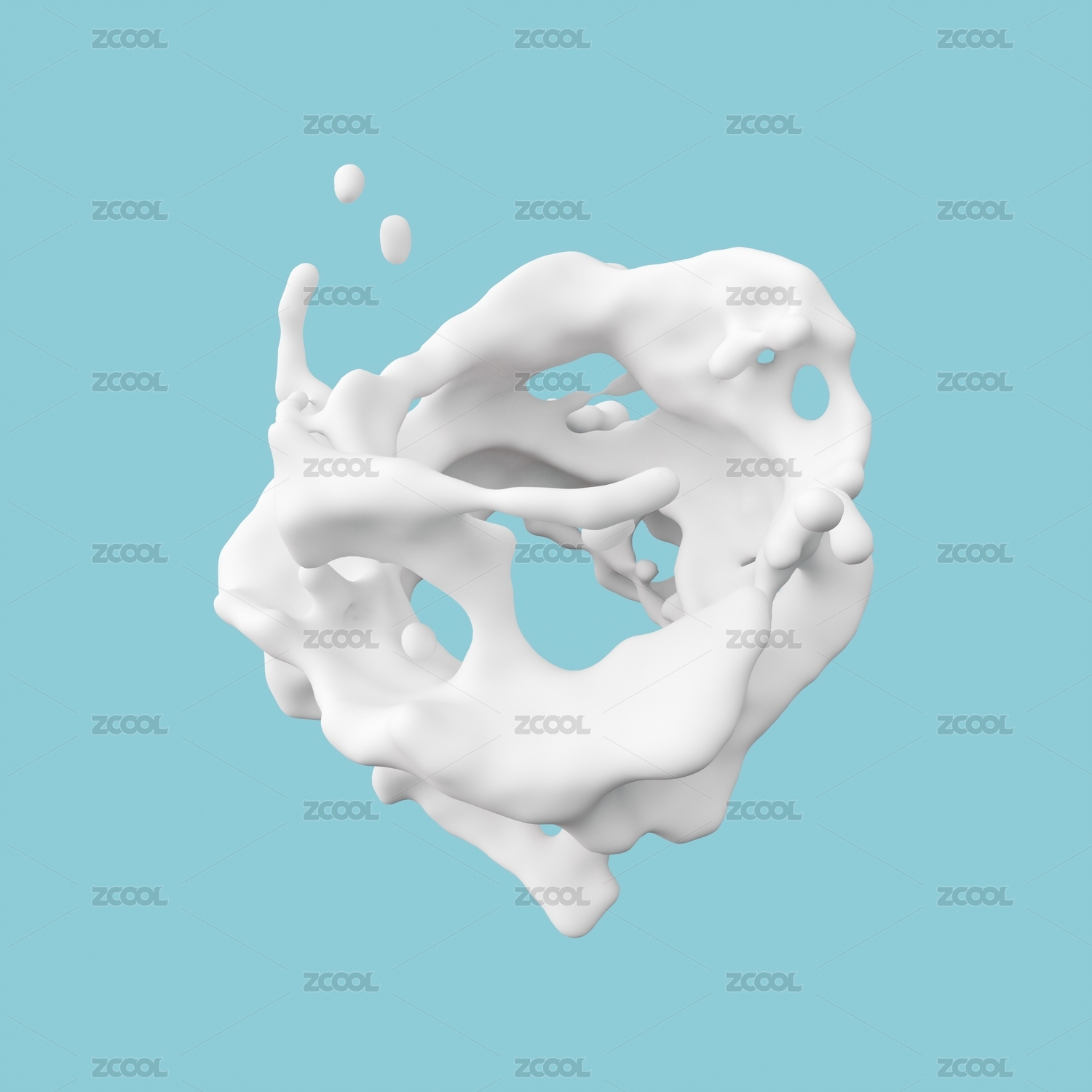 白色的牛奶酸奶水花分離在藍(lán)色的背景