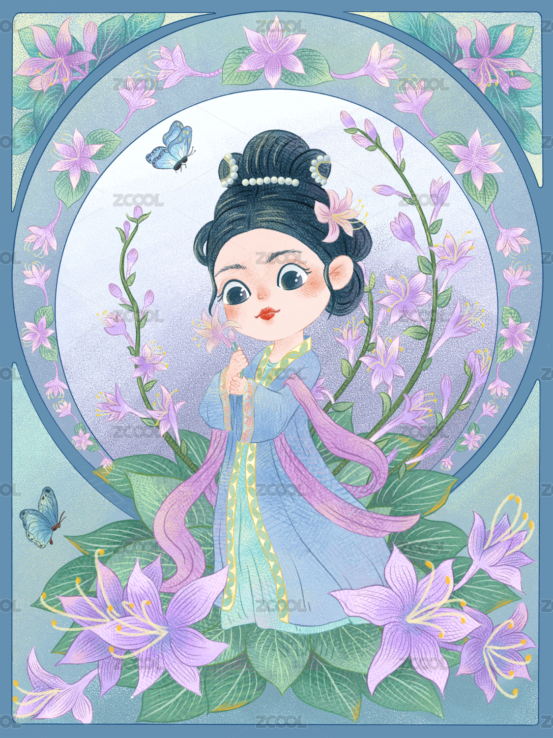 十二花神之七月玉簪女神人物插畫(huà)