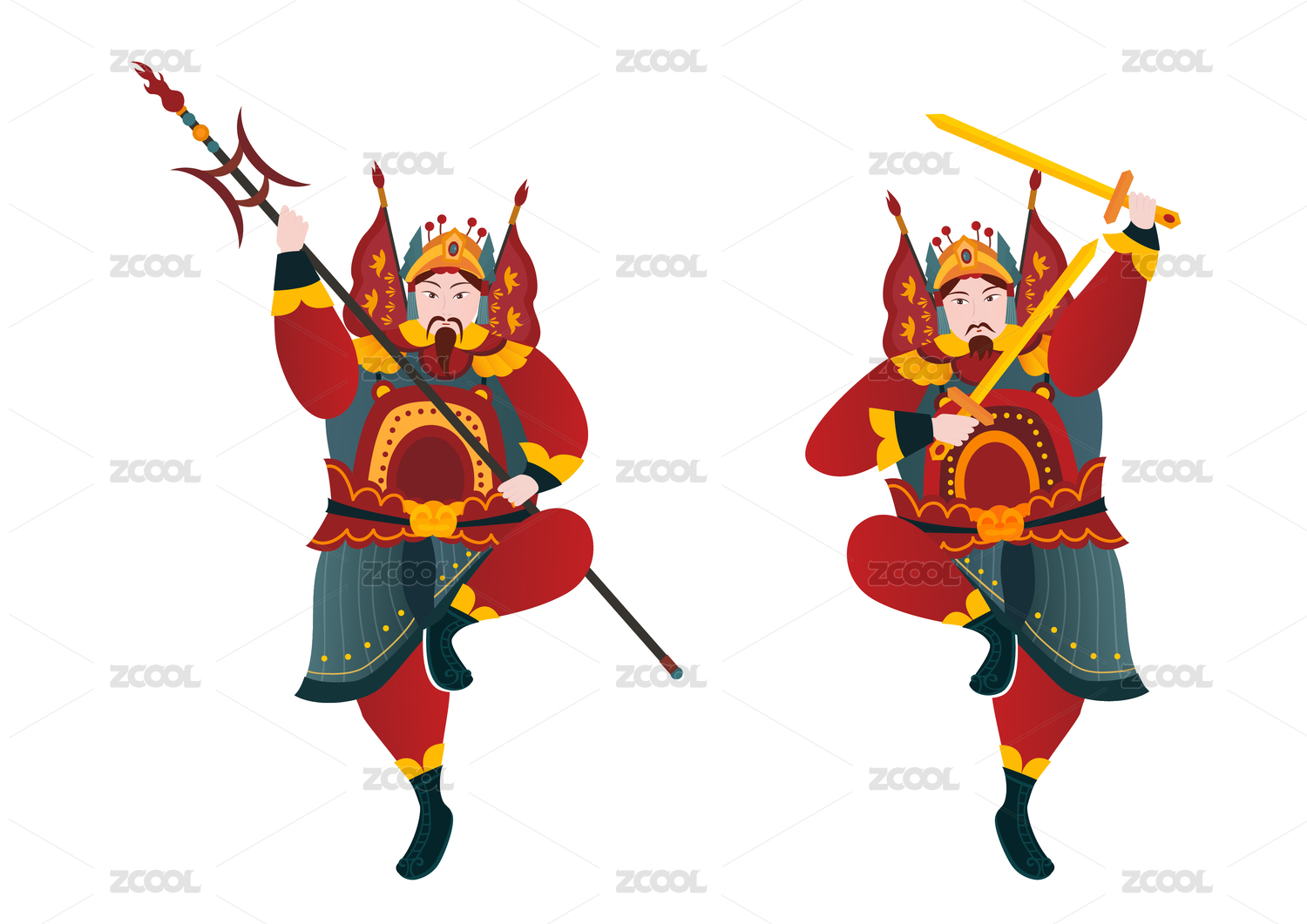 手繪矢量中國(guó)風(fēng)刀戟門(mén)神將士守護(hù)神人像