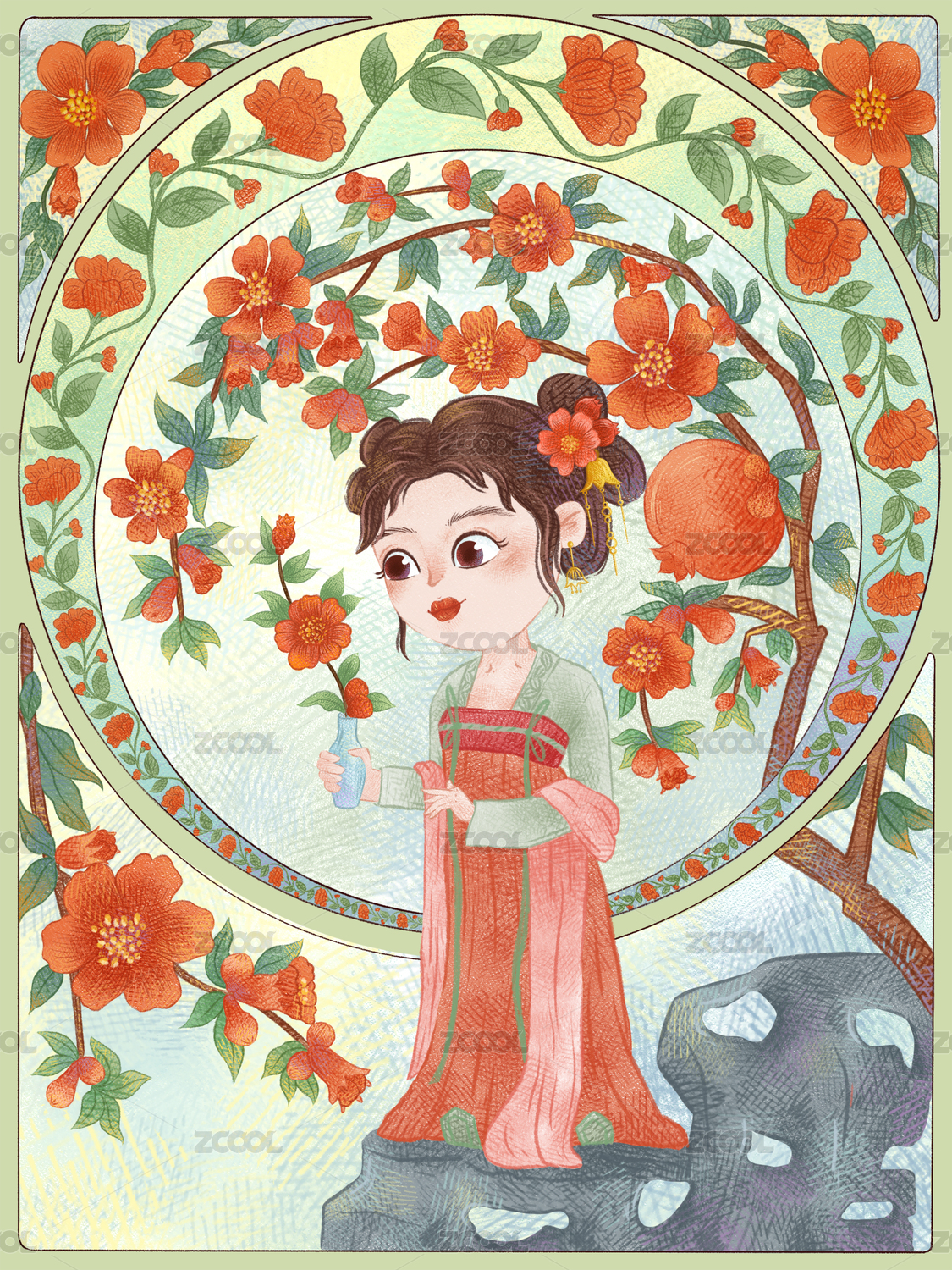 十二花神之五月石榴花神人物插畫(huà)