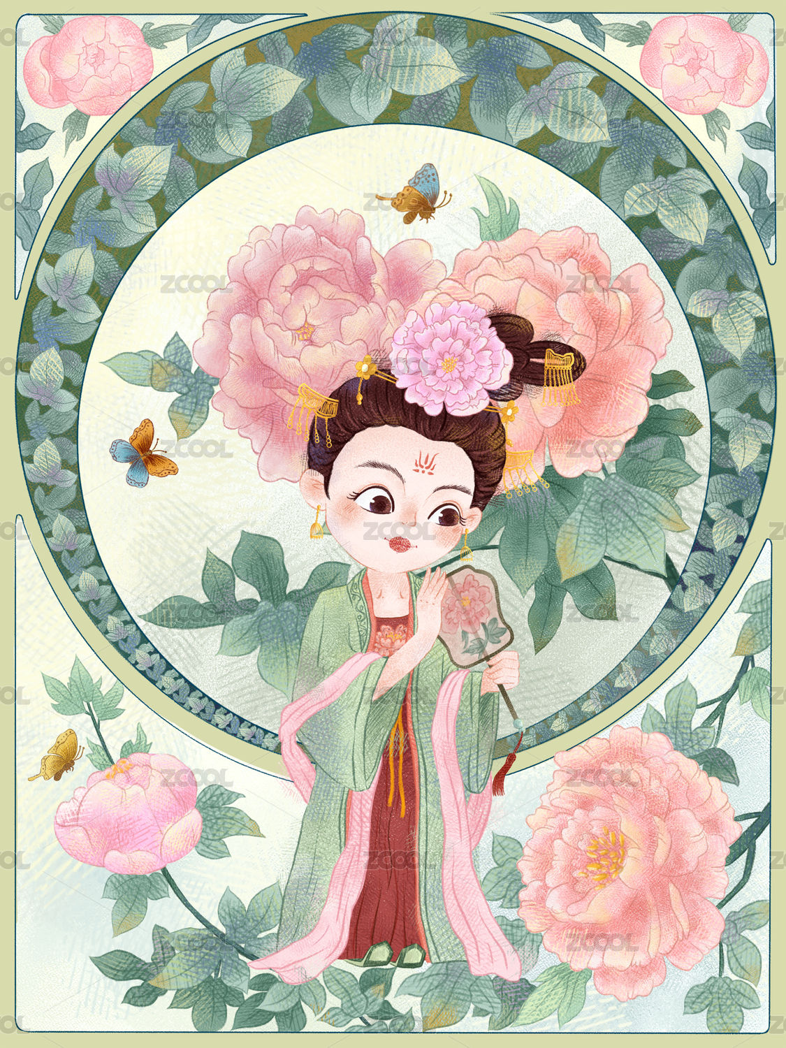 十二花神之四月牡丹花神人物插畫(huà)