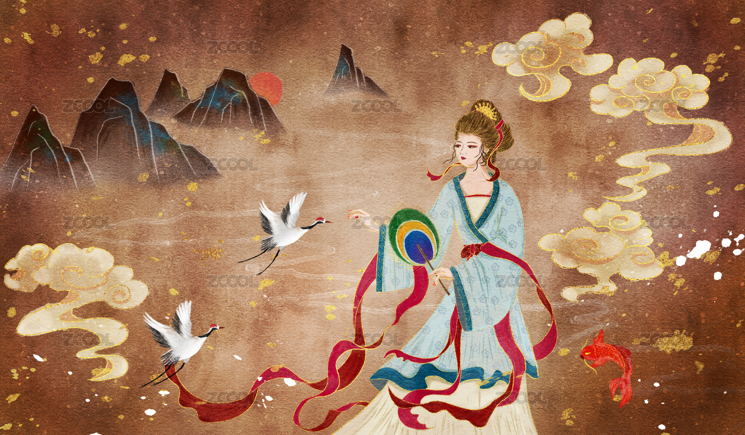 古風(fēng)牡丹花神人像