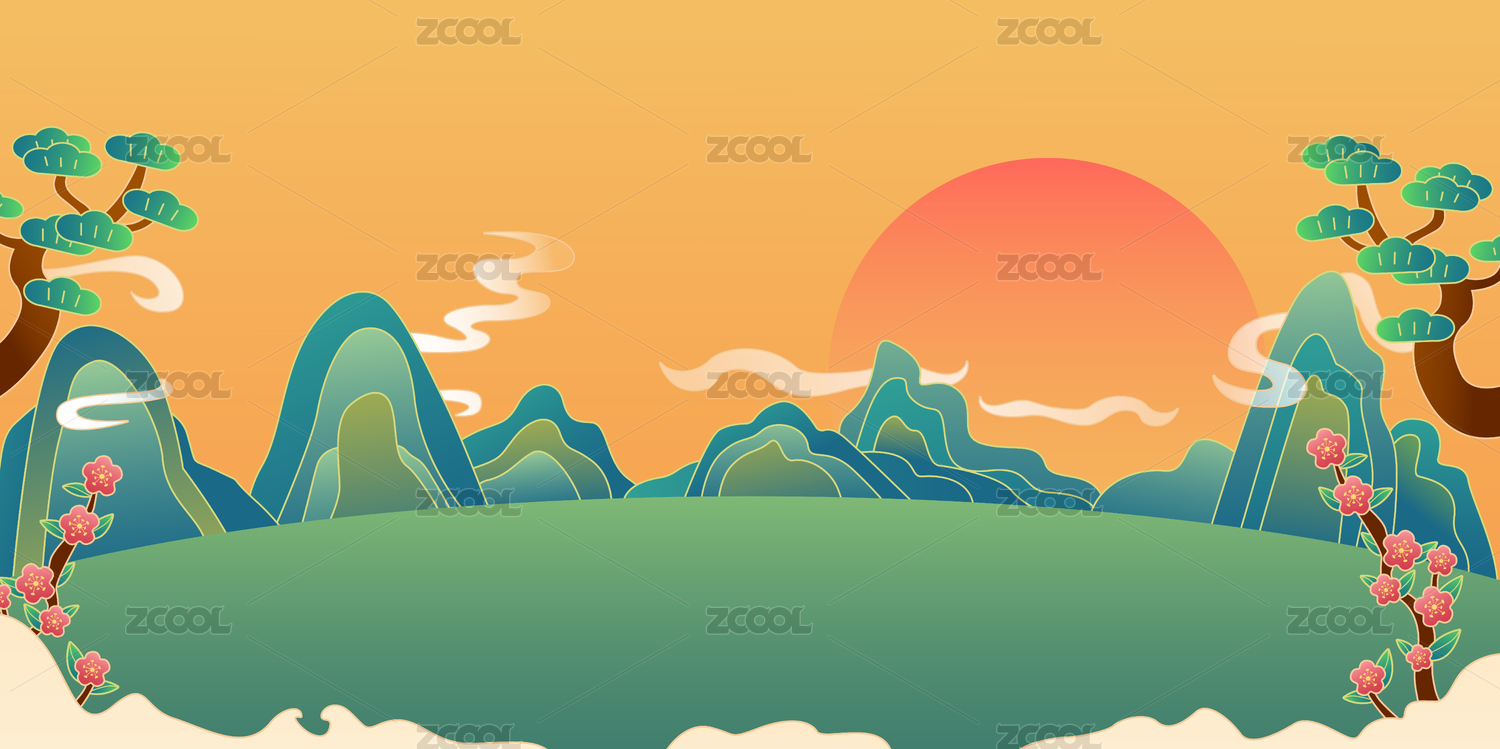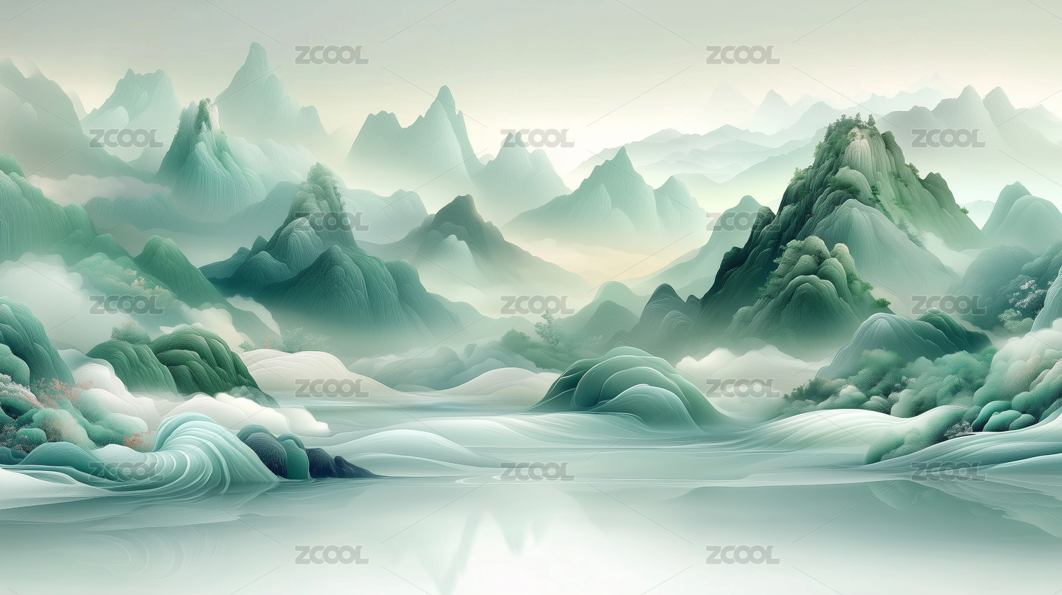 青綠國潮古風(fēng)國風(fēng)山水背景圖