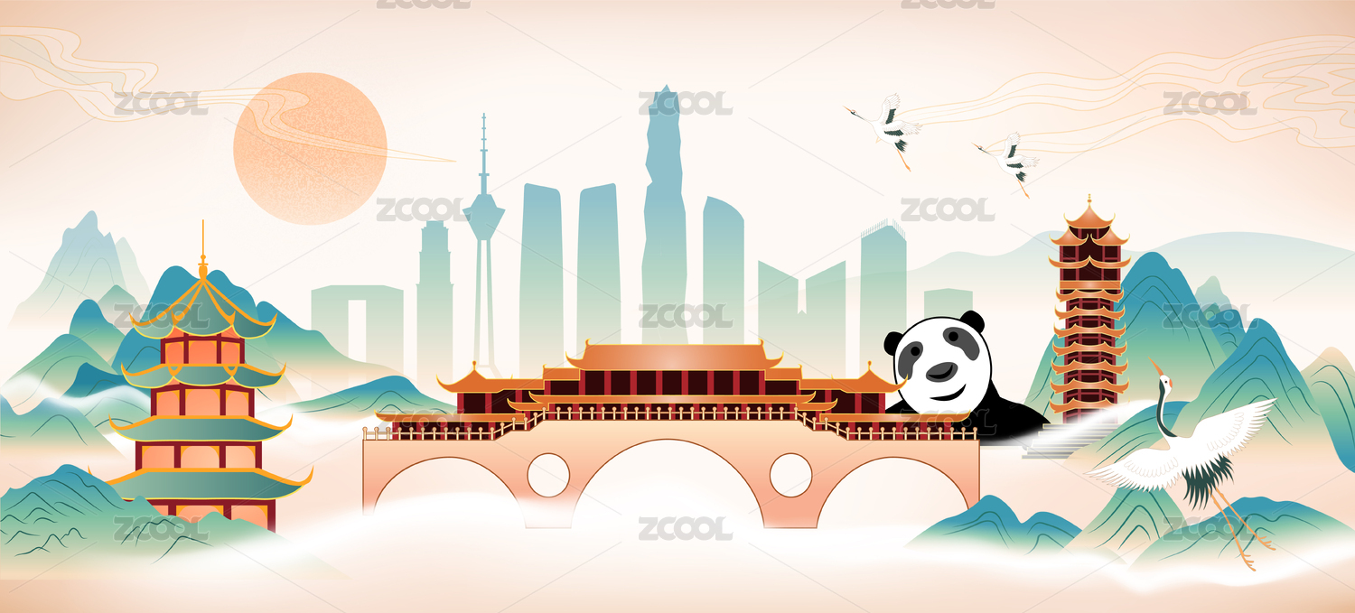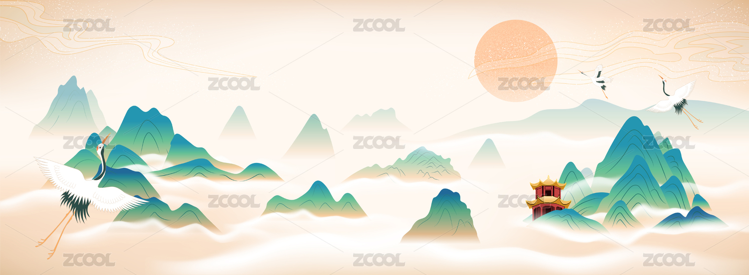 新中式國潮創(chuàng)意國潮國風(fēng)青綠山水矢量畫
