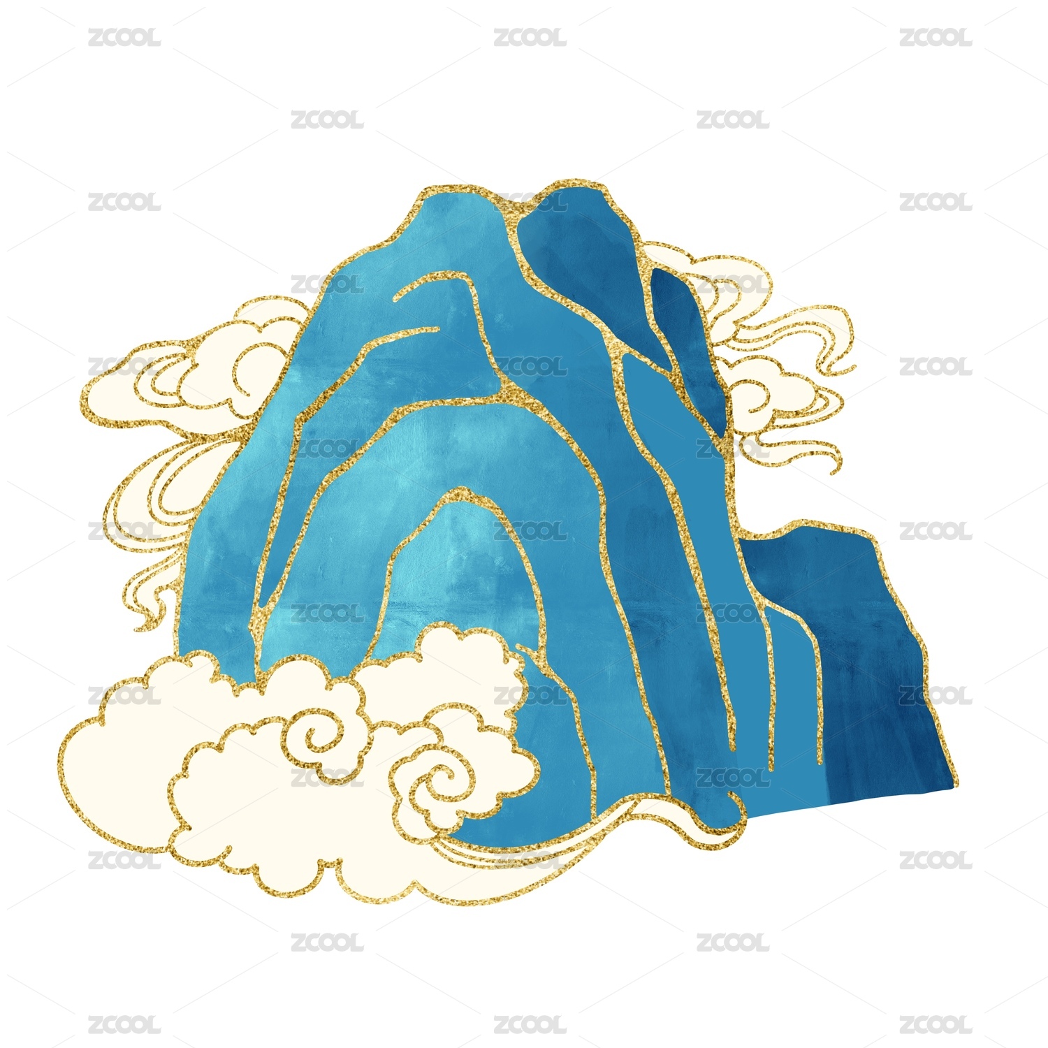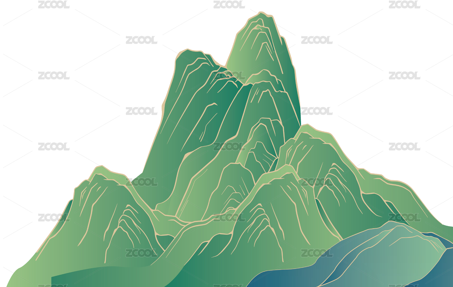 原創(chuàng)青綠山水祥云矢量圖免扣設(shè)計(jì)素材