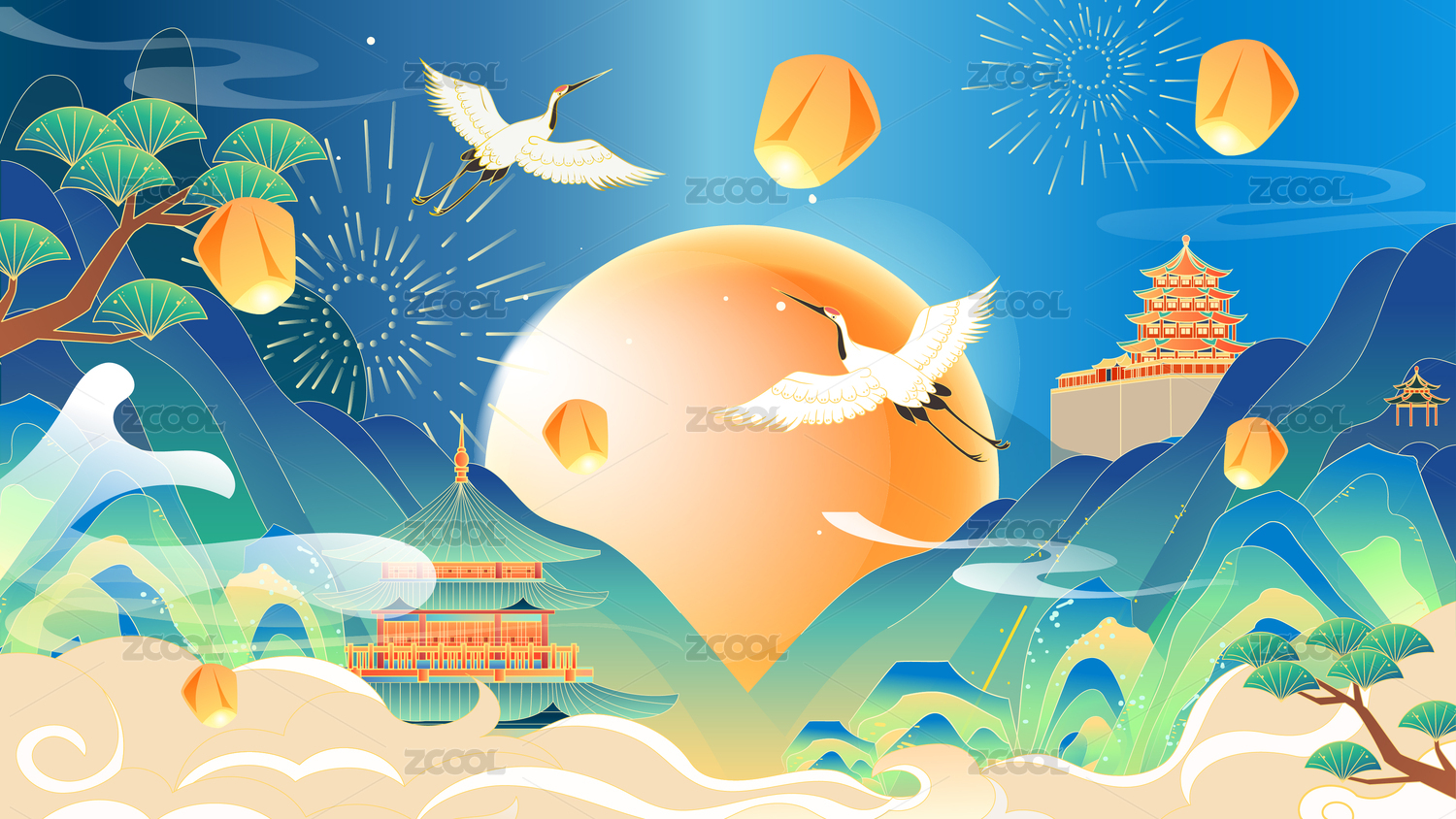 青綠山水傳統(tǒng)古風(fēng)國潮背景圖壁紙