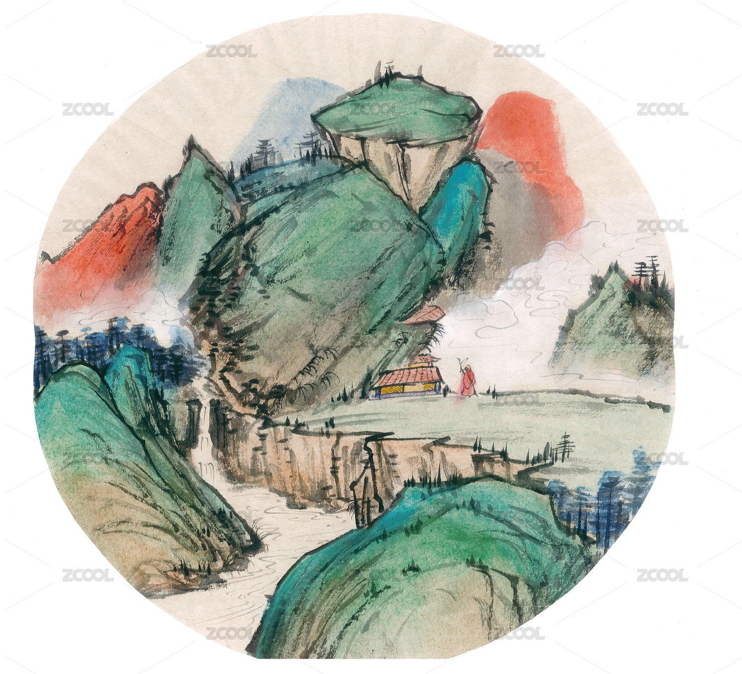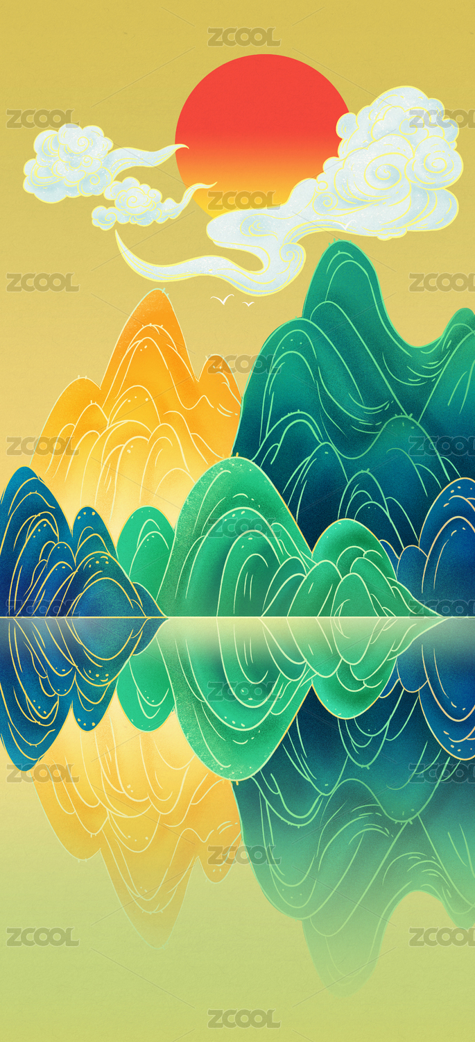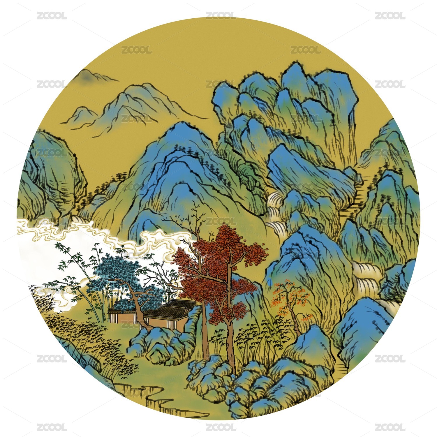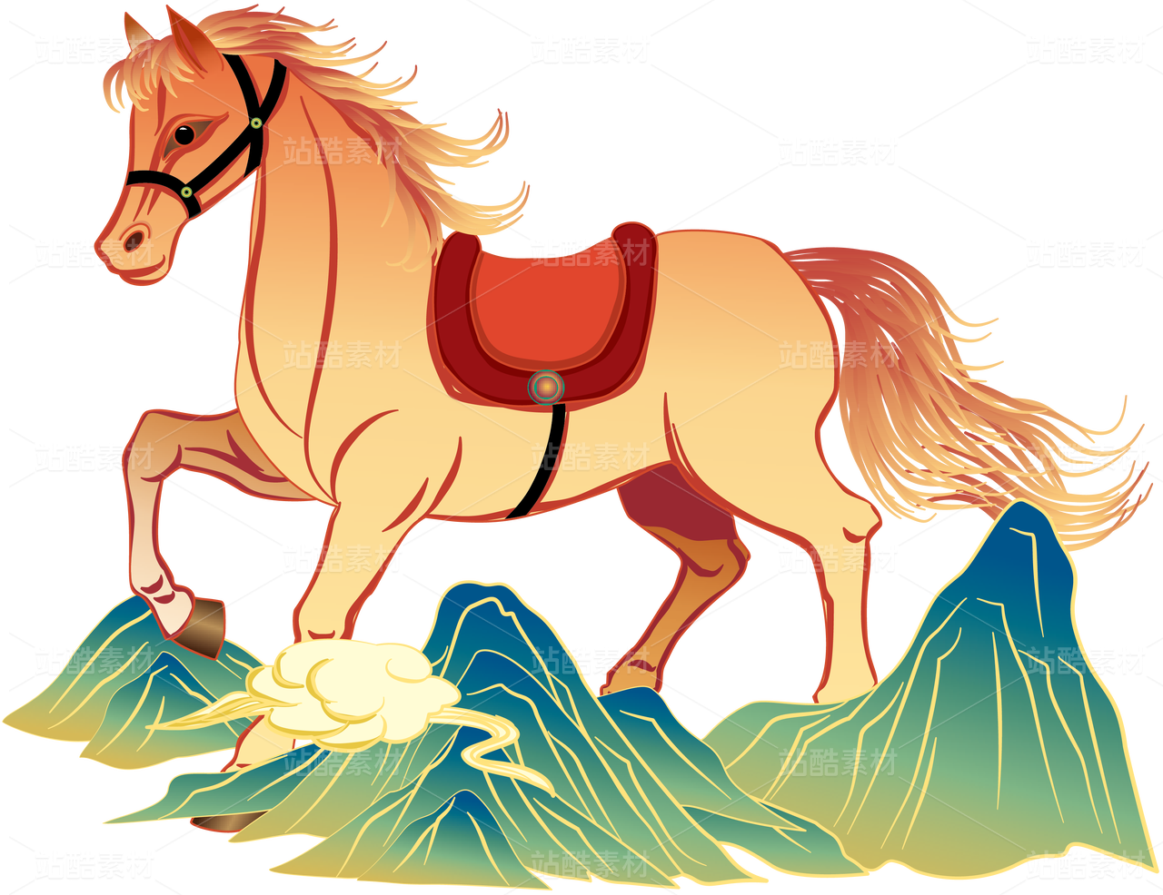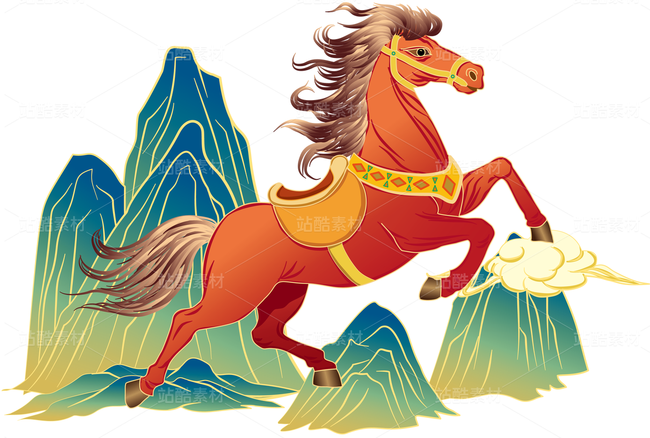 國潮風(fēng)青綠山水駿馬 免扣矢量設(shè)計(jì)