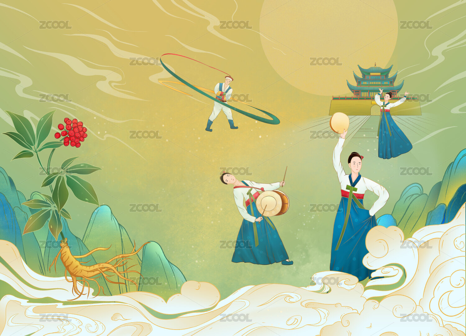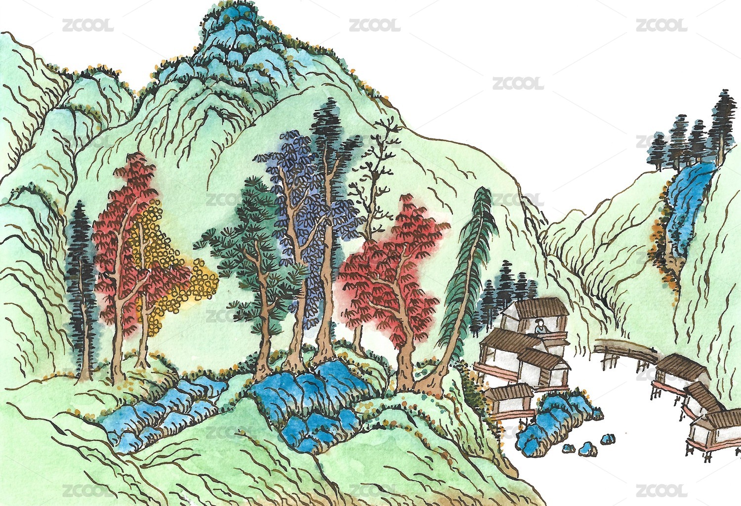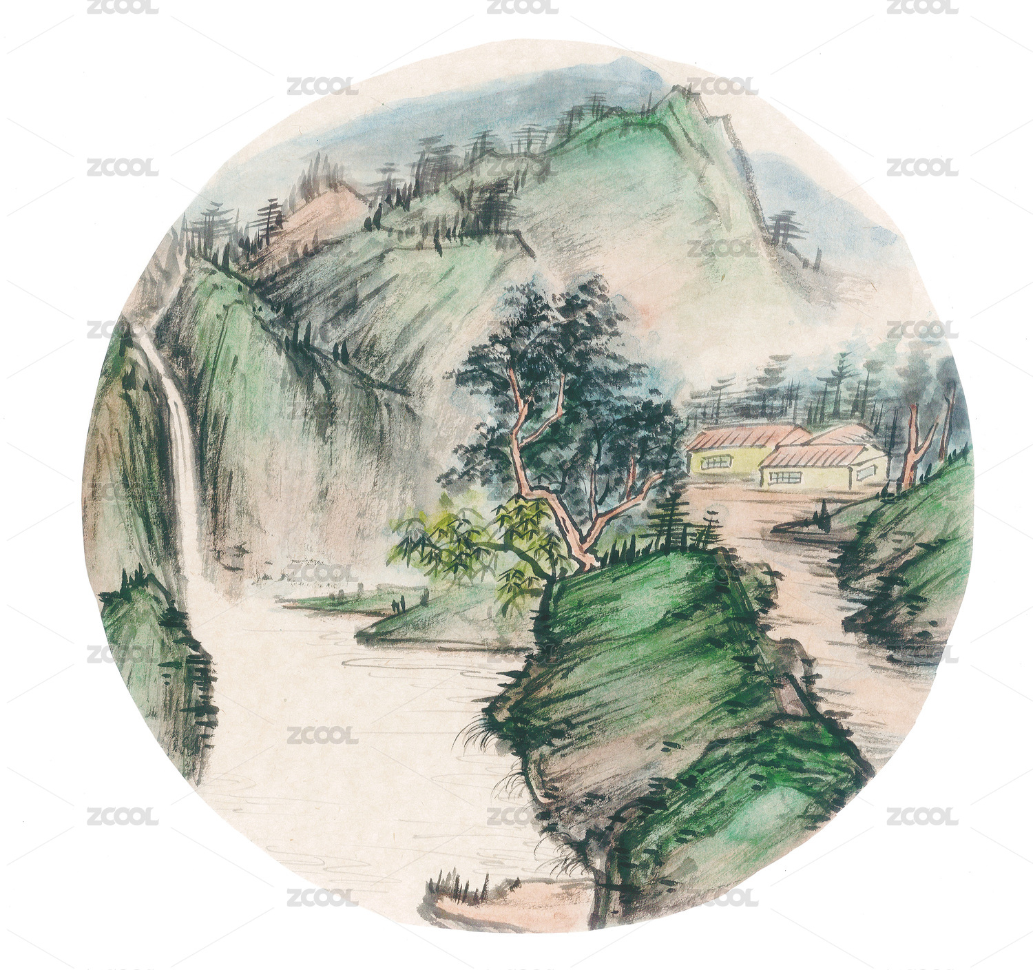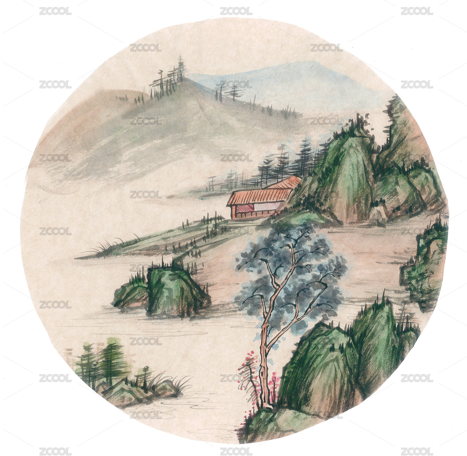 國潮風(fēng)青綠山水駿馬 免扣矢量設(shè)計(jì)
