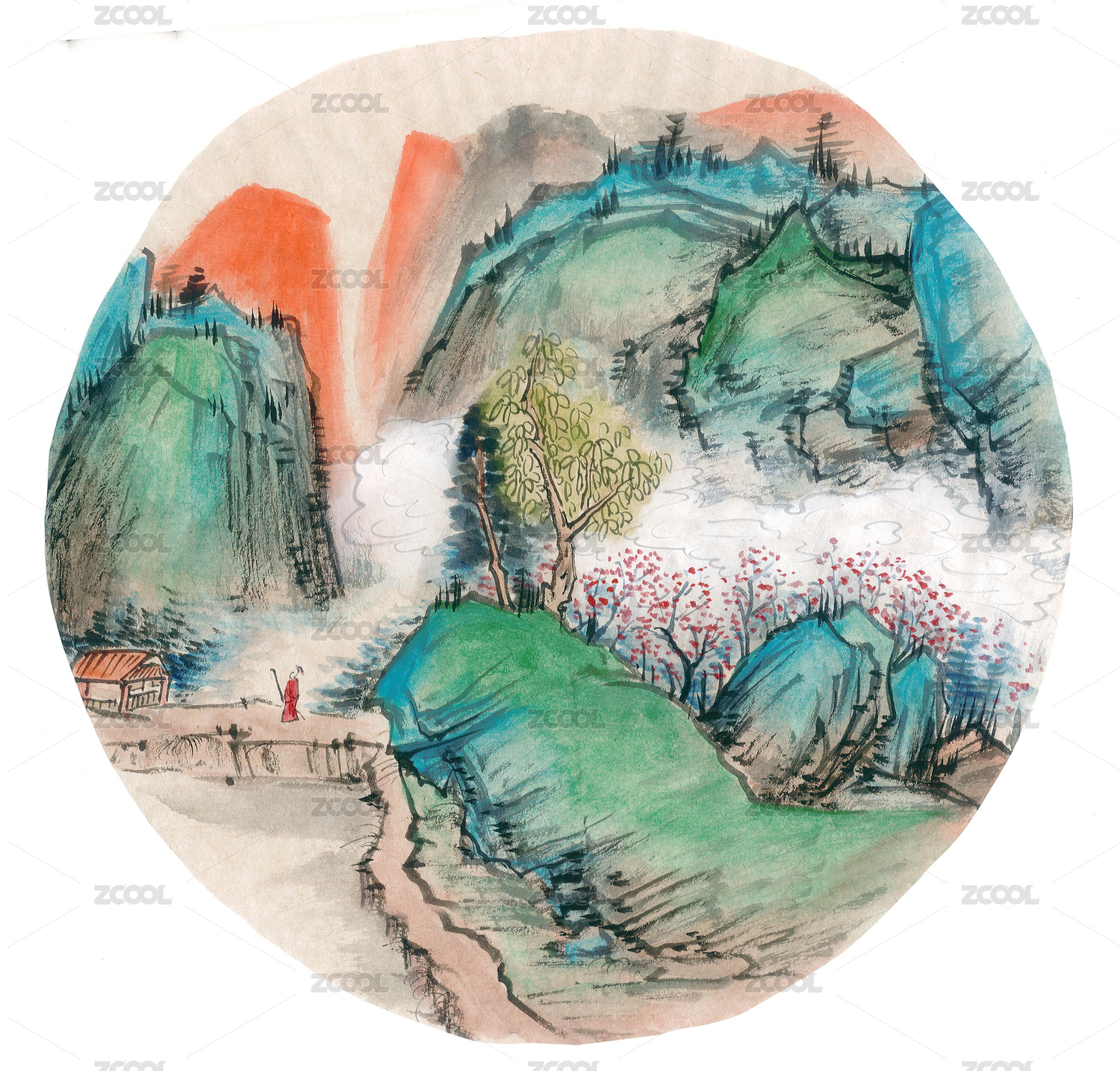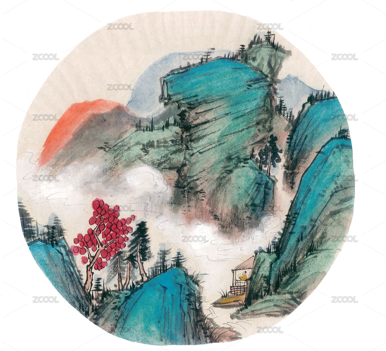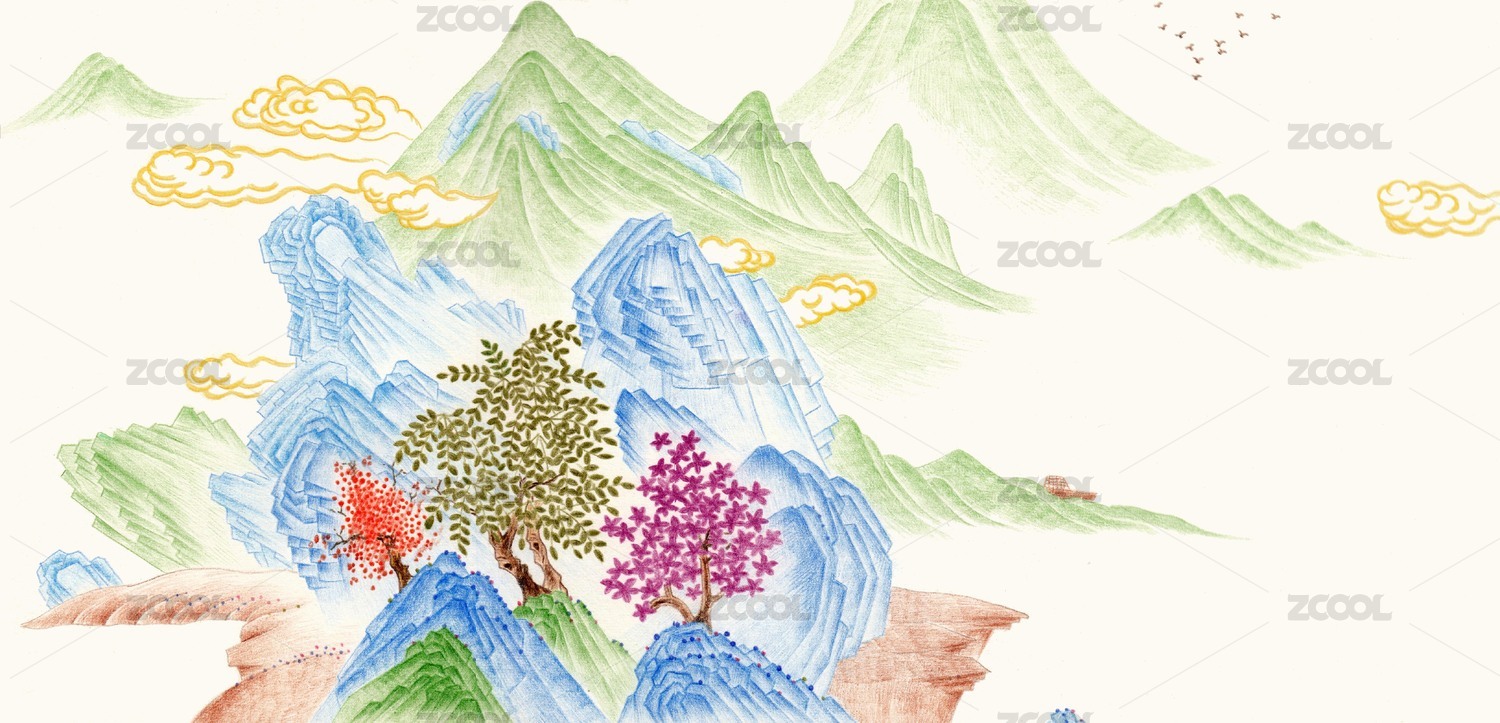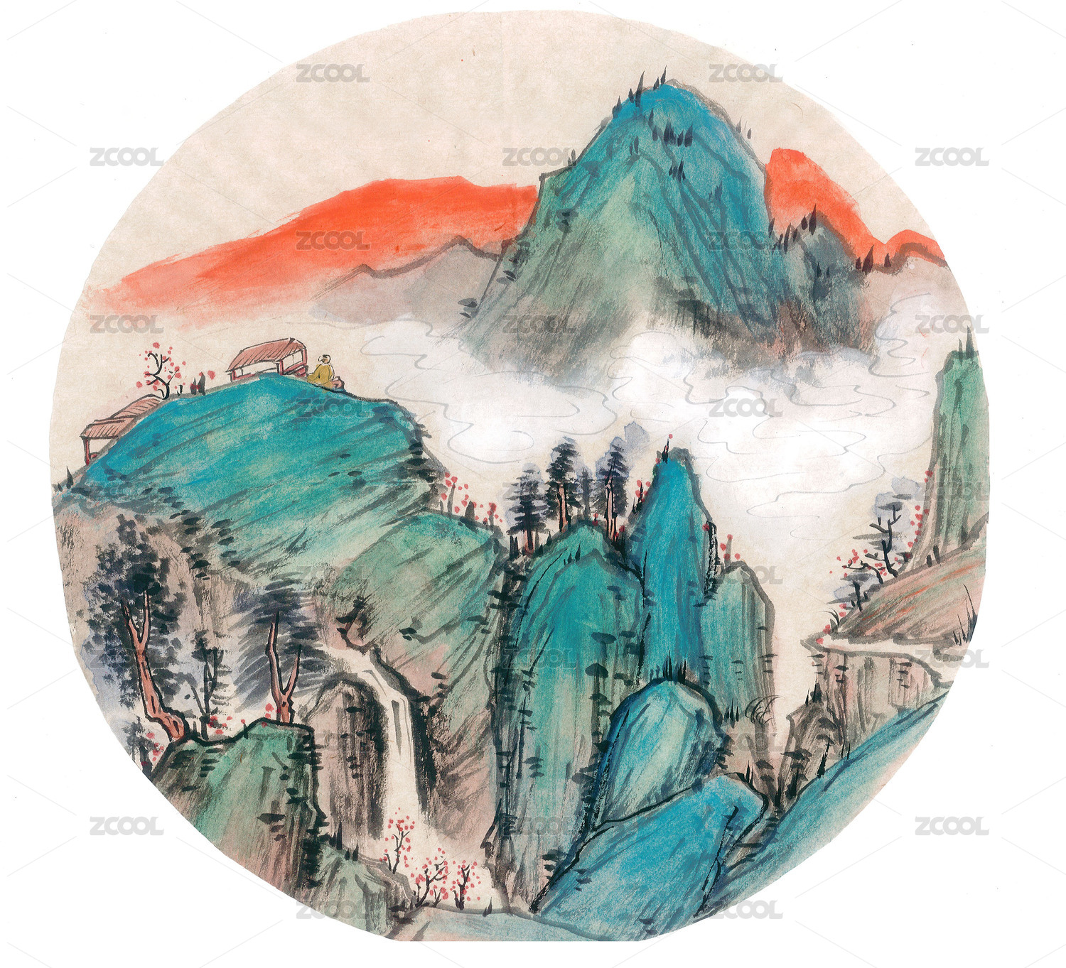原創(chuàng)青綠山水祥云矢量圖免扣設(shè)計(jì)素材