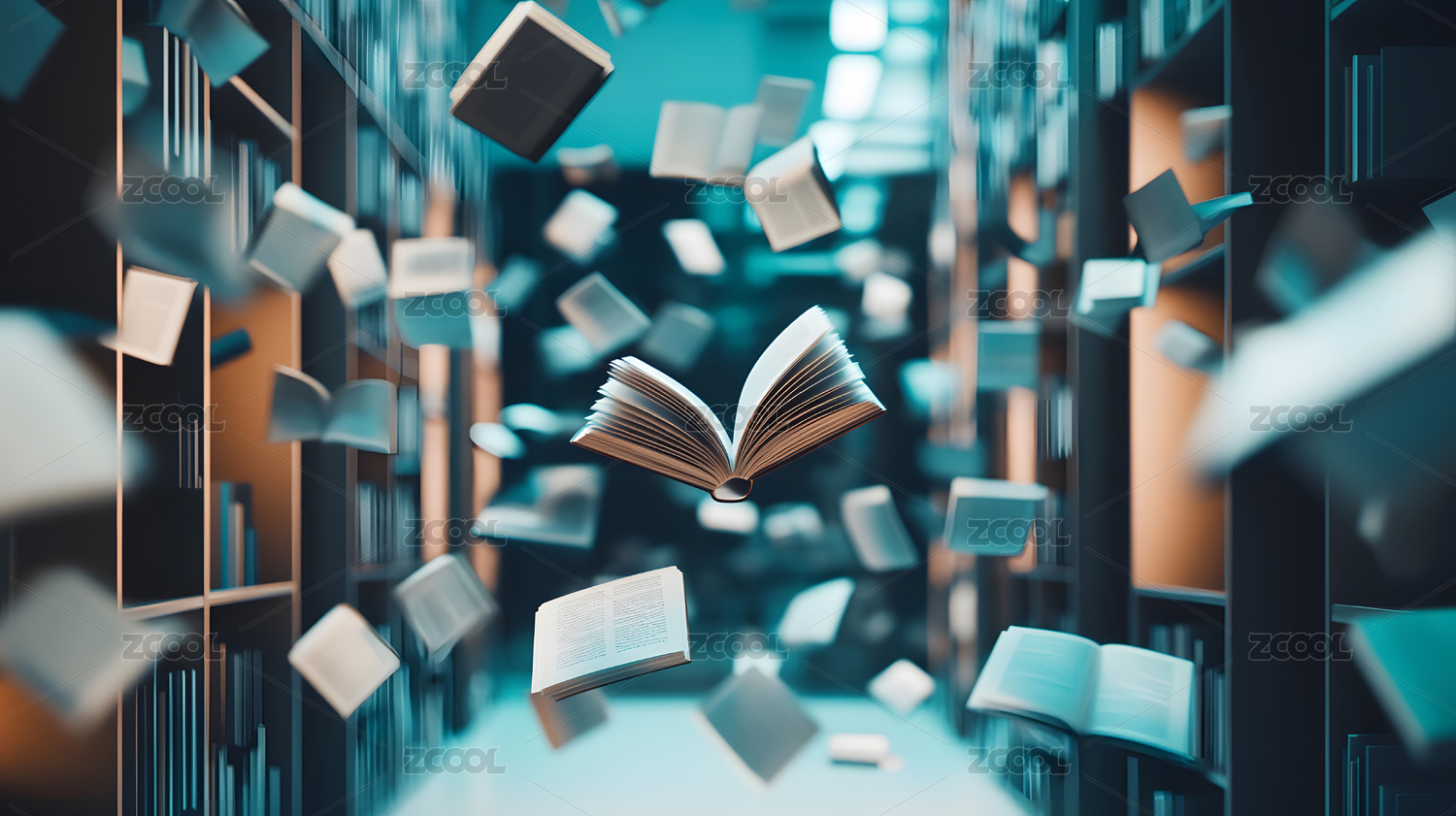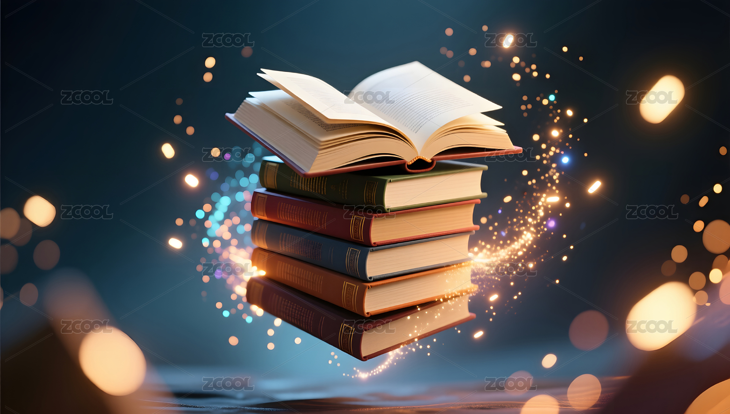 漂浮在空中的奇幻書籍三維渲染場(chǎng)景