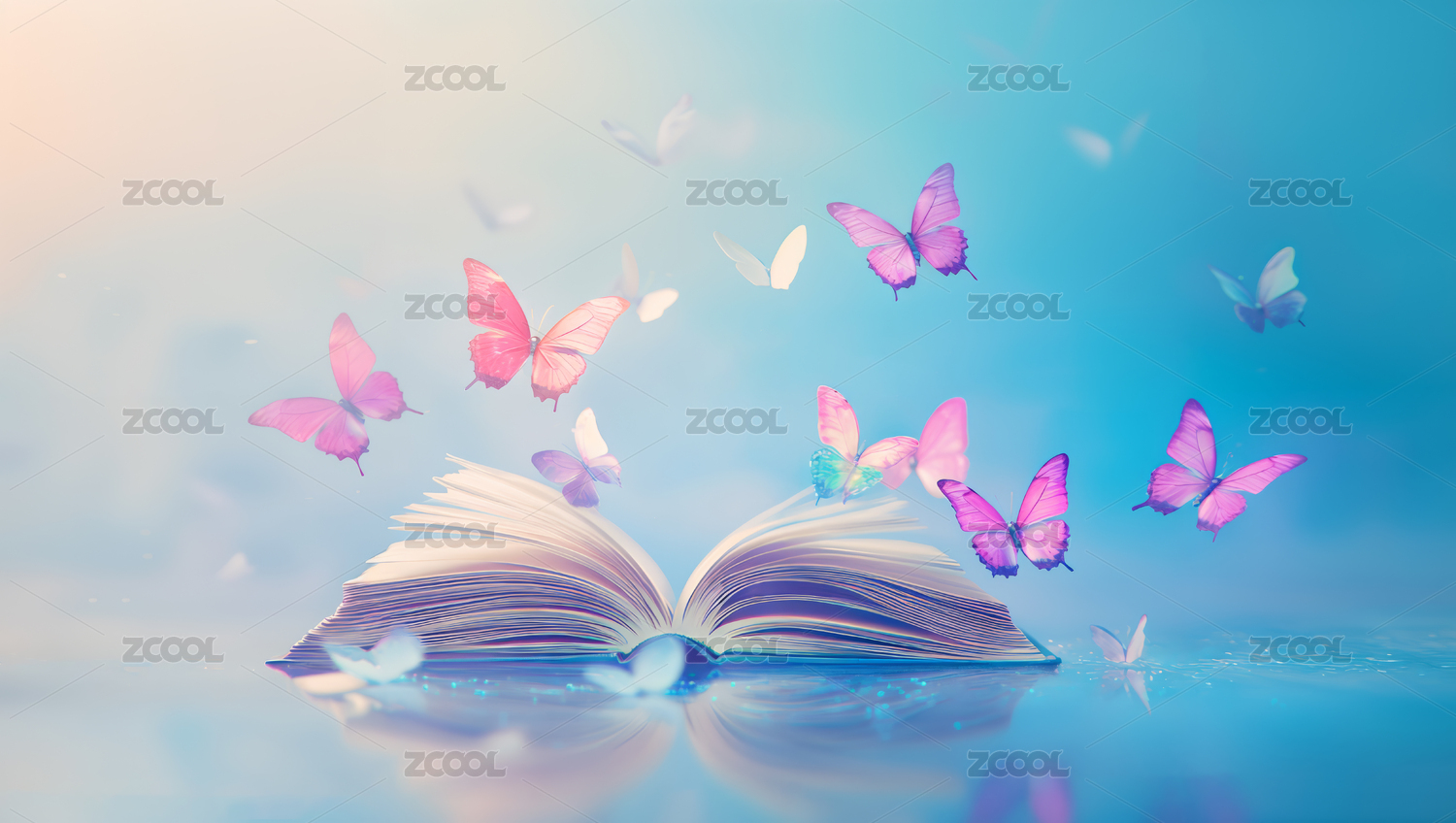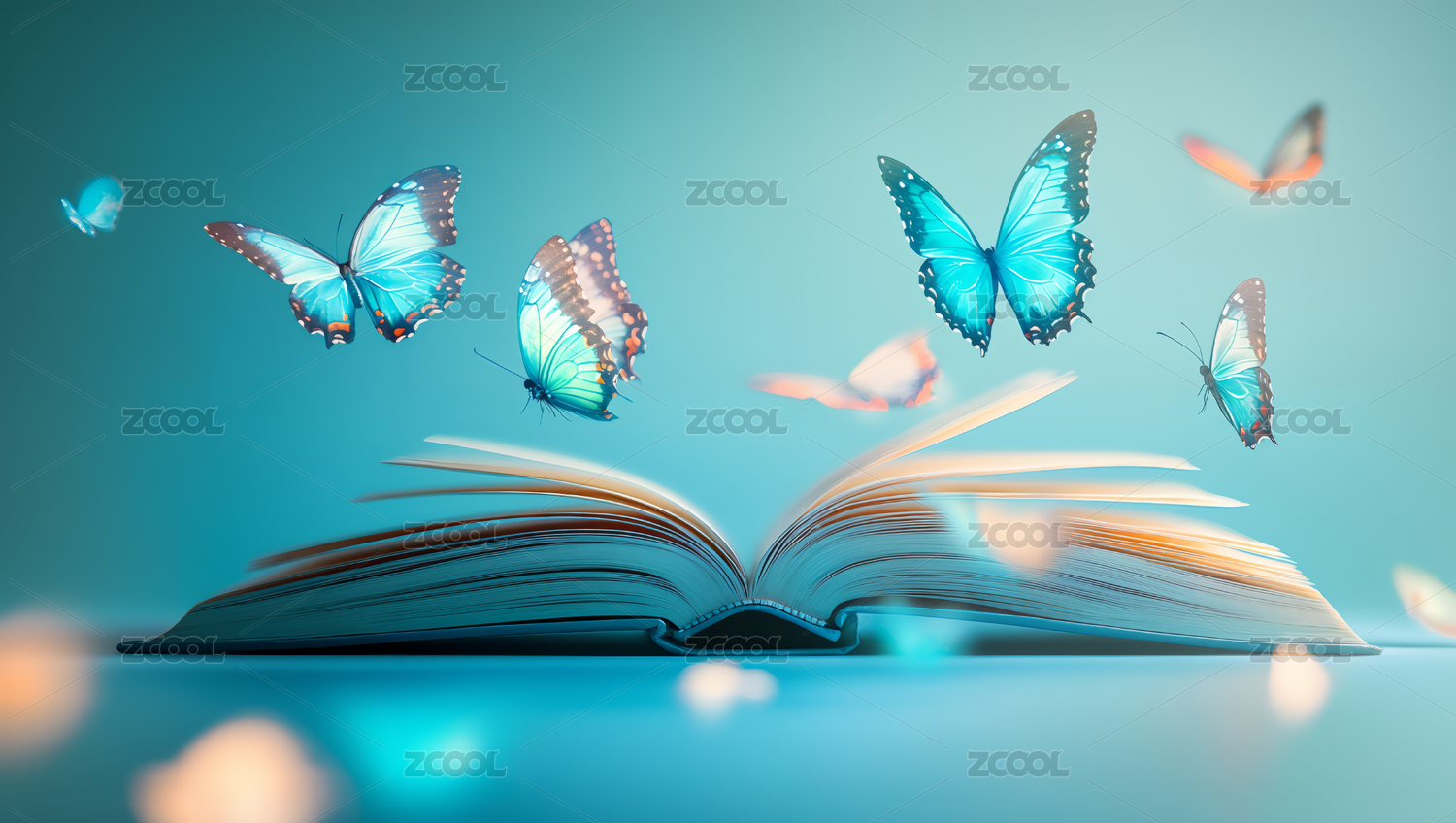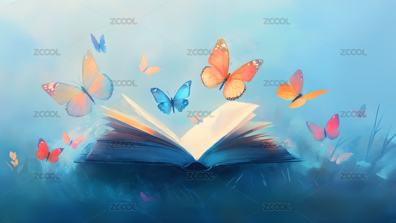 草地上的書本和蝴蝶唯美場(chǎng)景