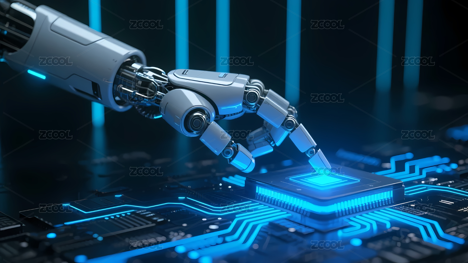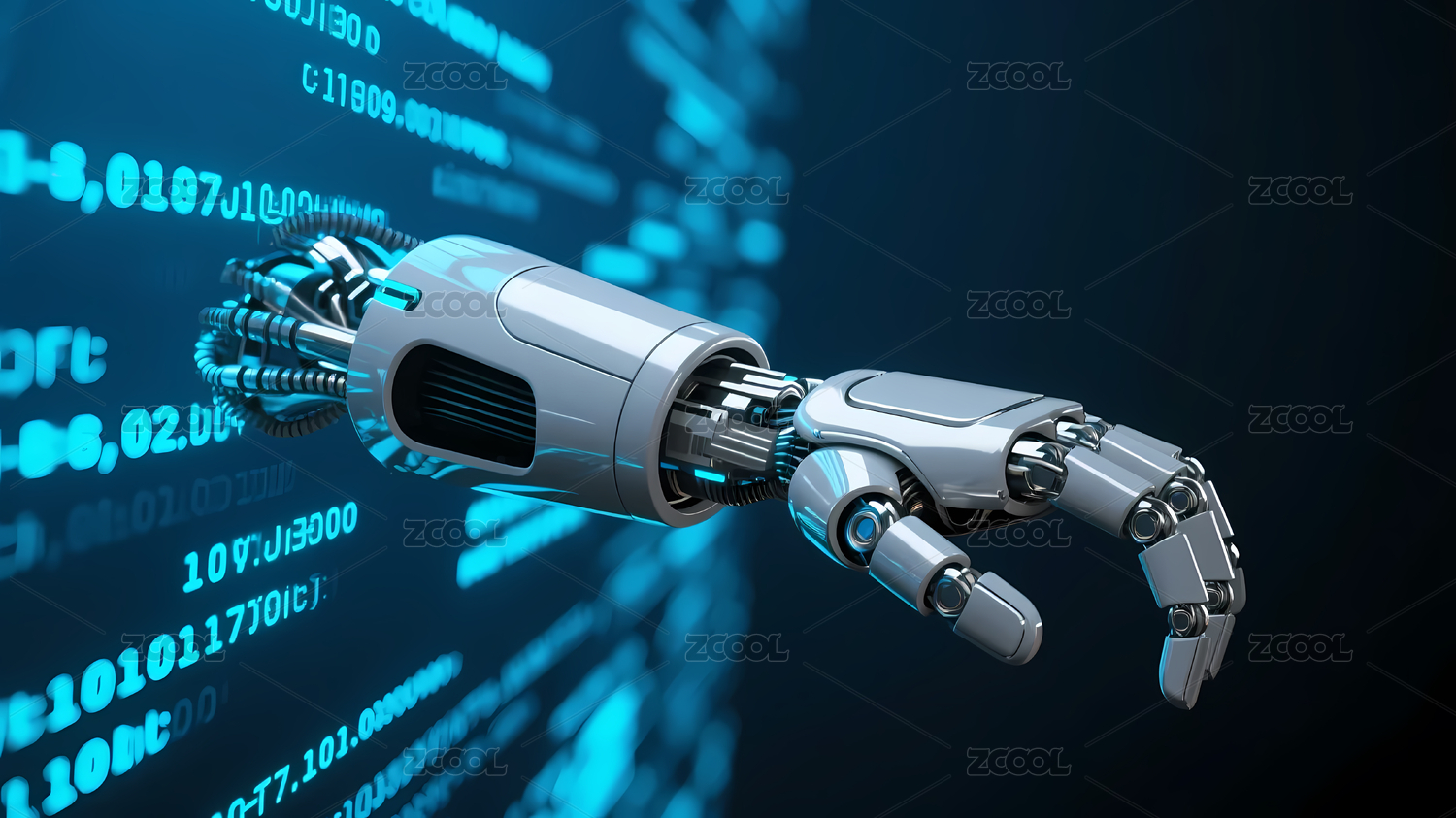 銀灰機(jī)械臂與藍(lán)色代碼流