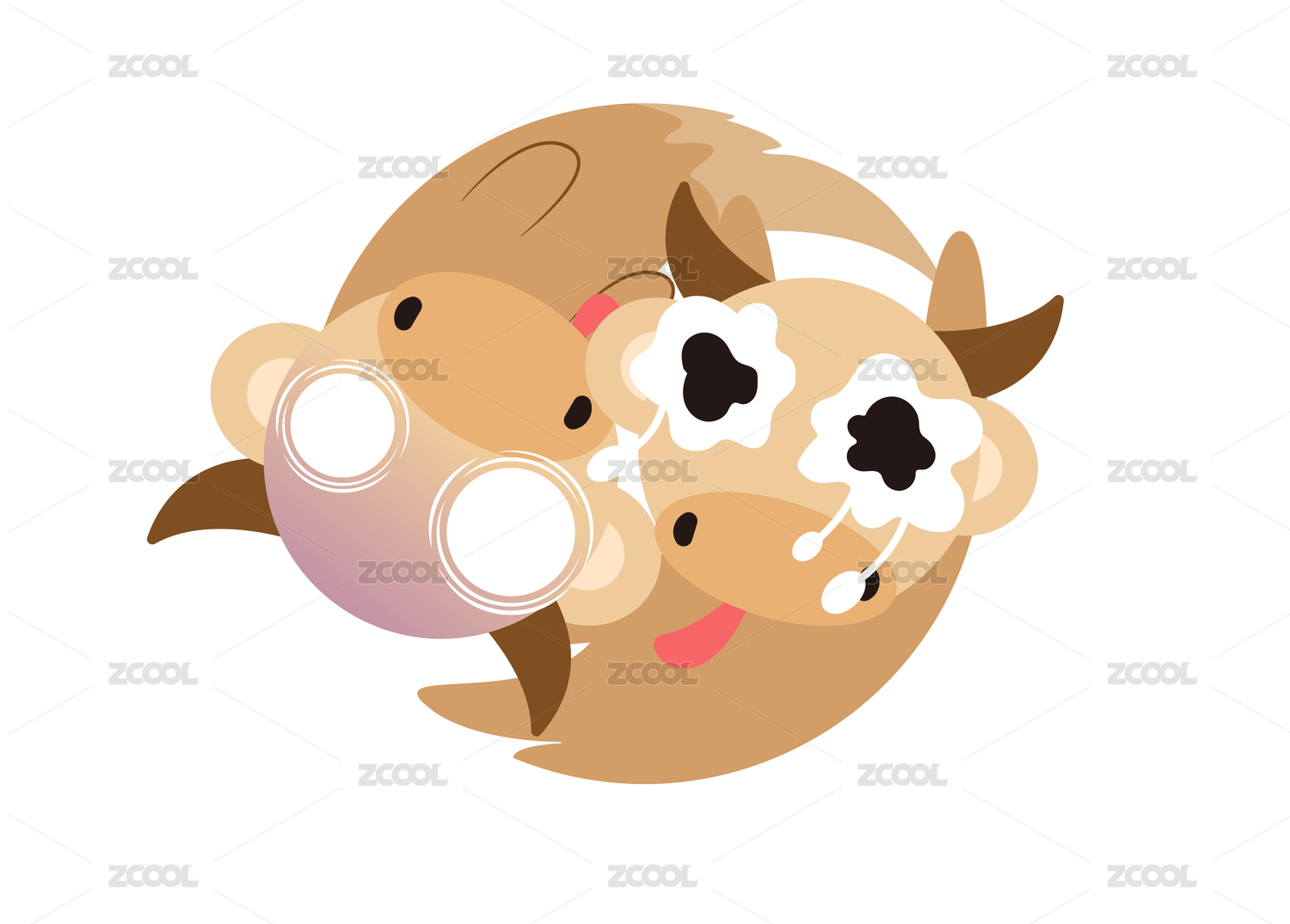 卡通風(fēng)小牛動物插畫素材