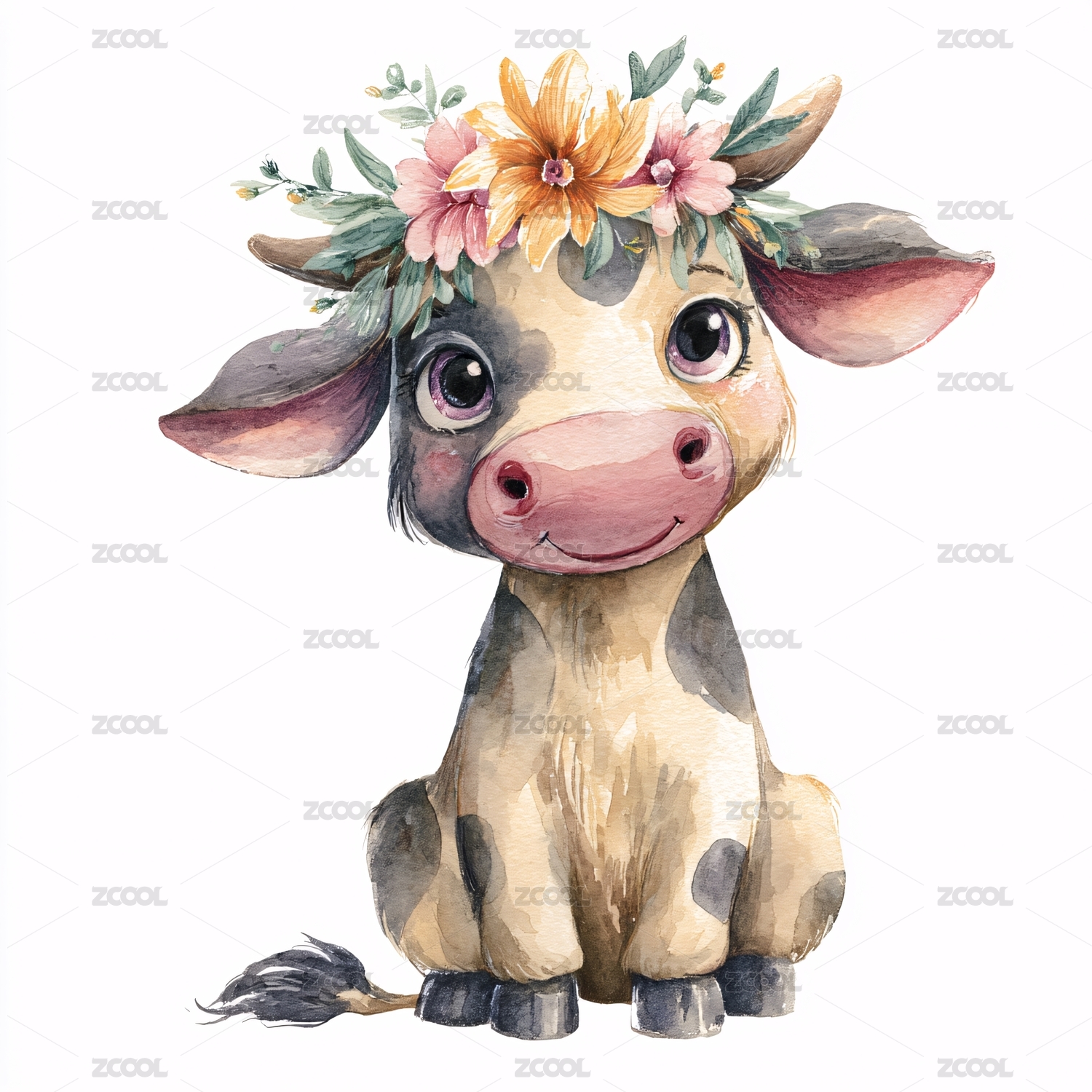戴花環(huán)的可愛小牛插畫