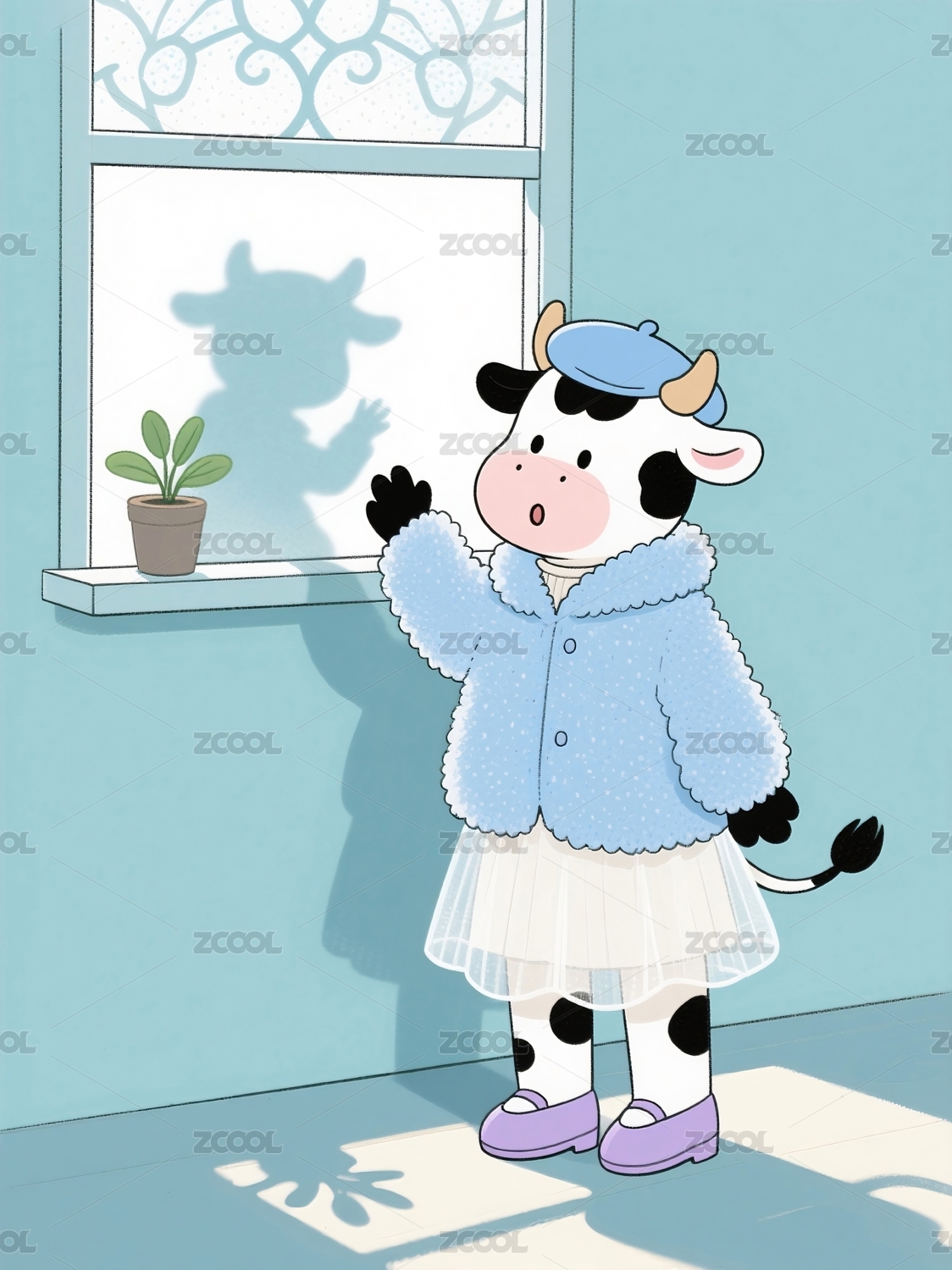 小牛窗邊看影子玩耍