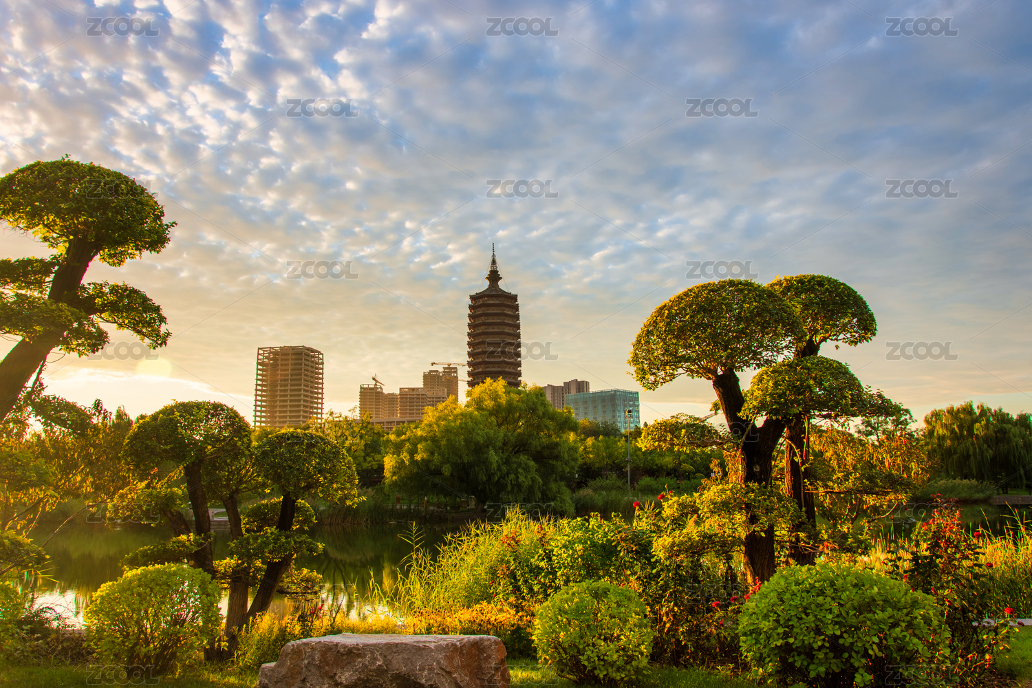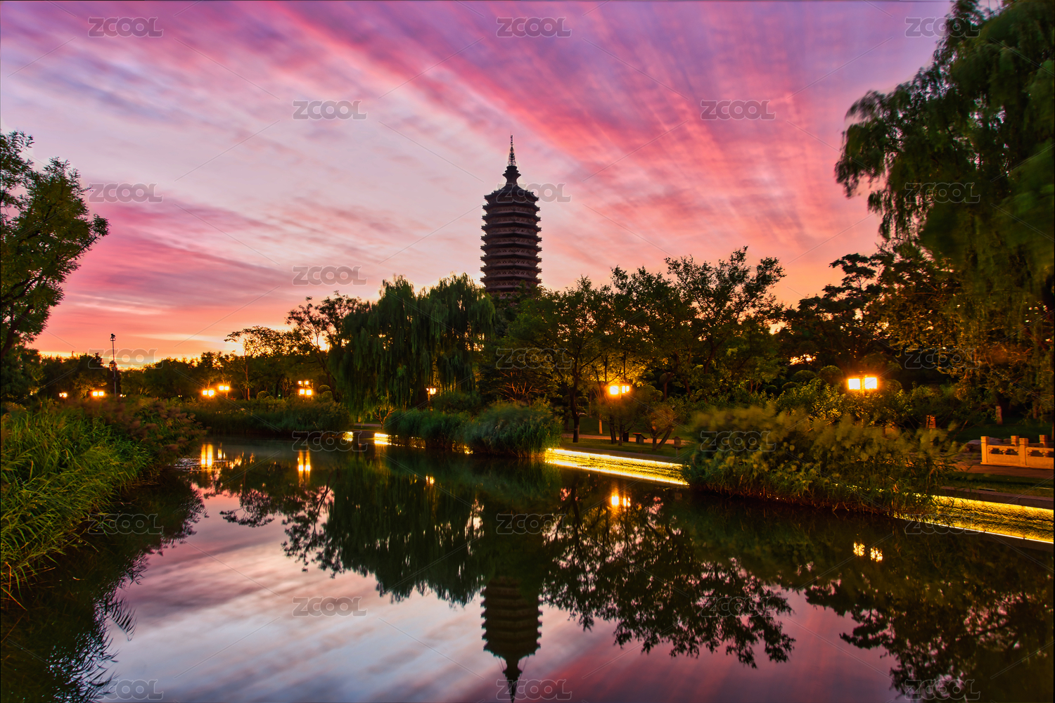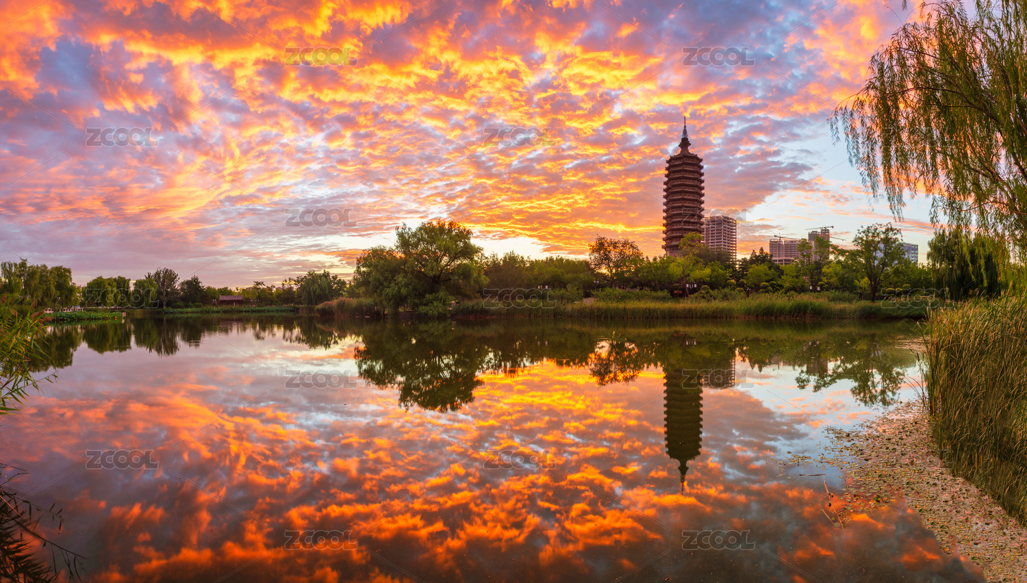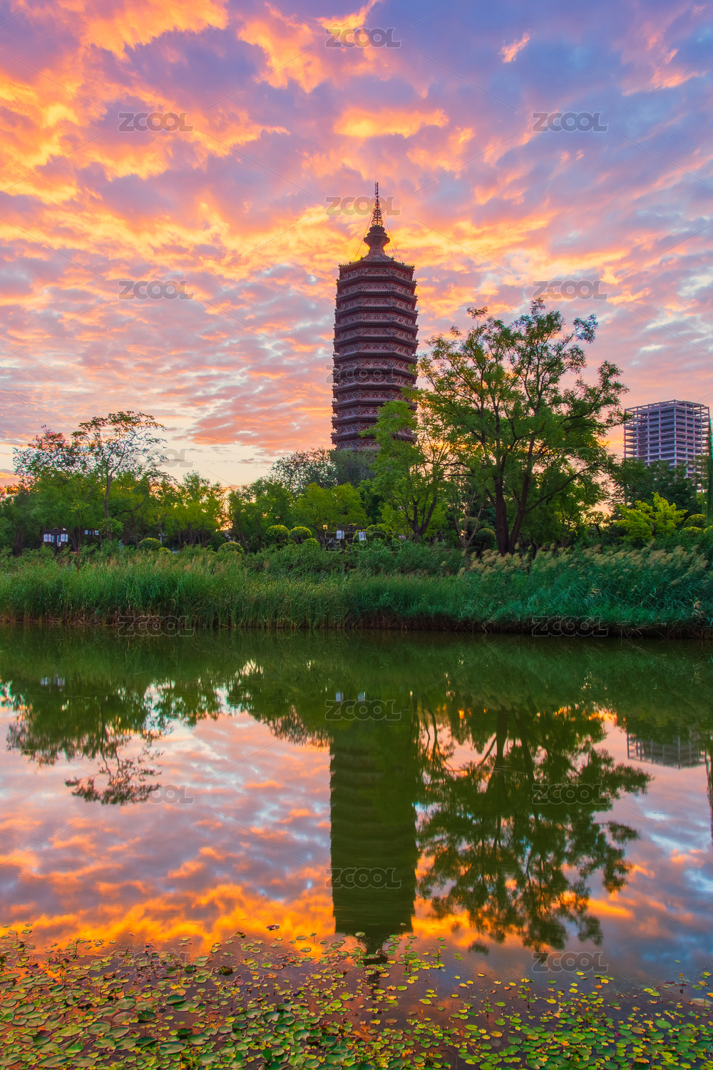 北京通州燃燈塔的朝霞,攝于西海子公園