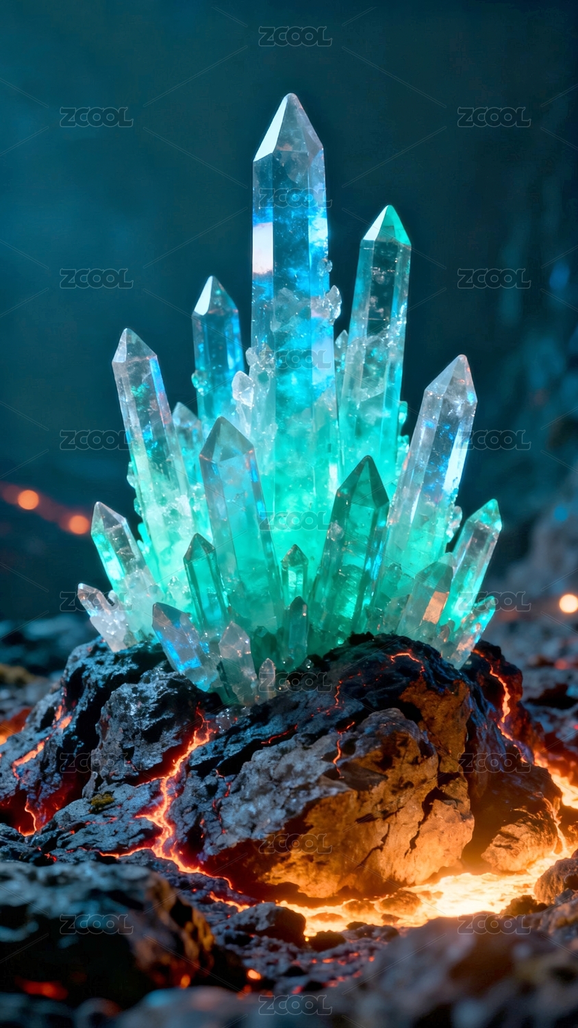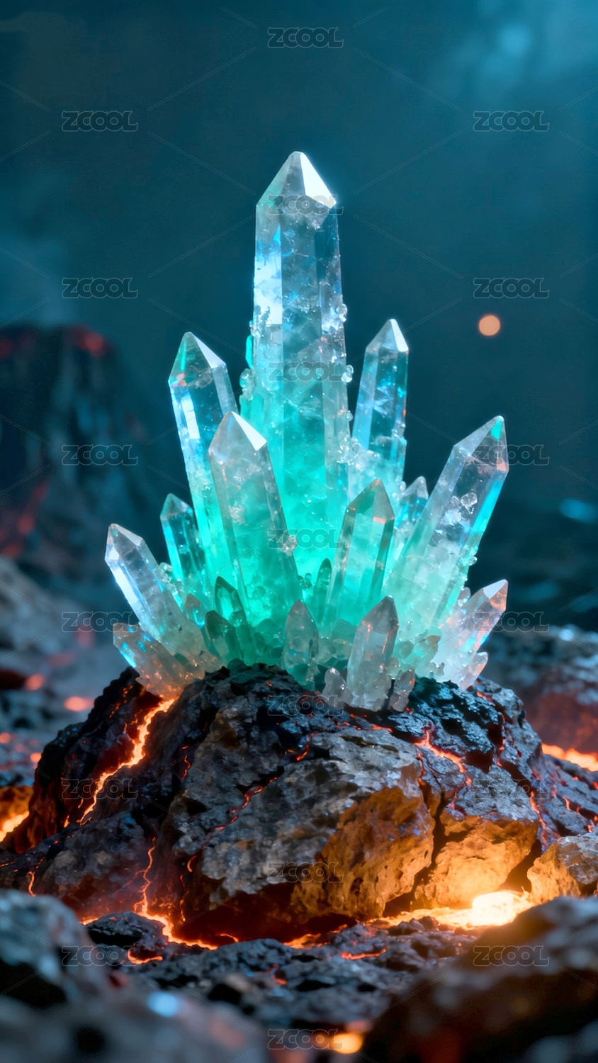 水晶藍(lán)綠色礦石展示場(chǎng)景
