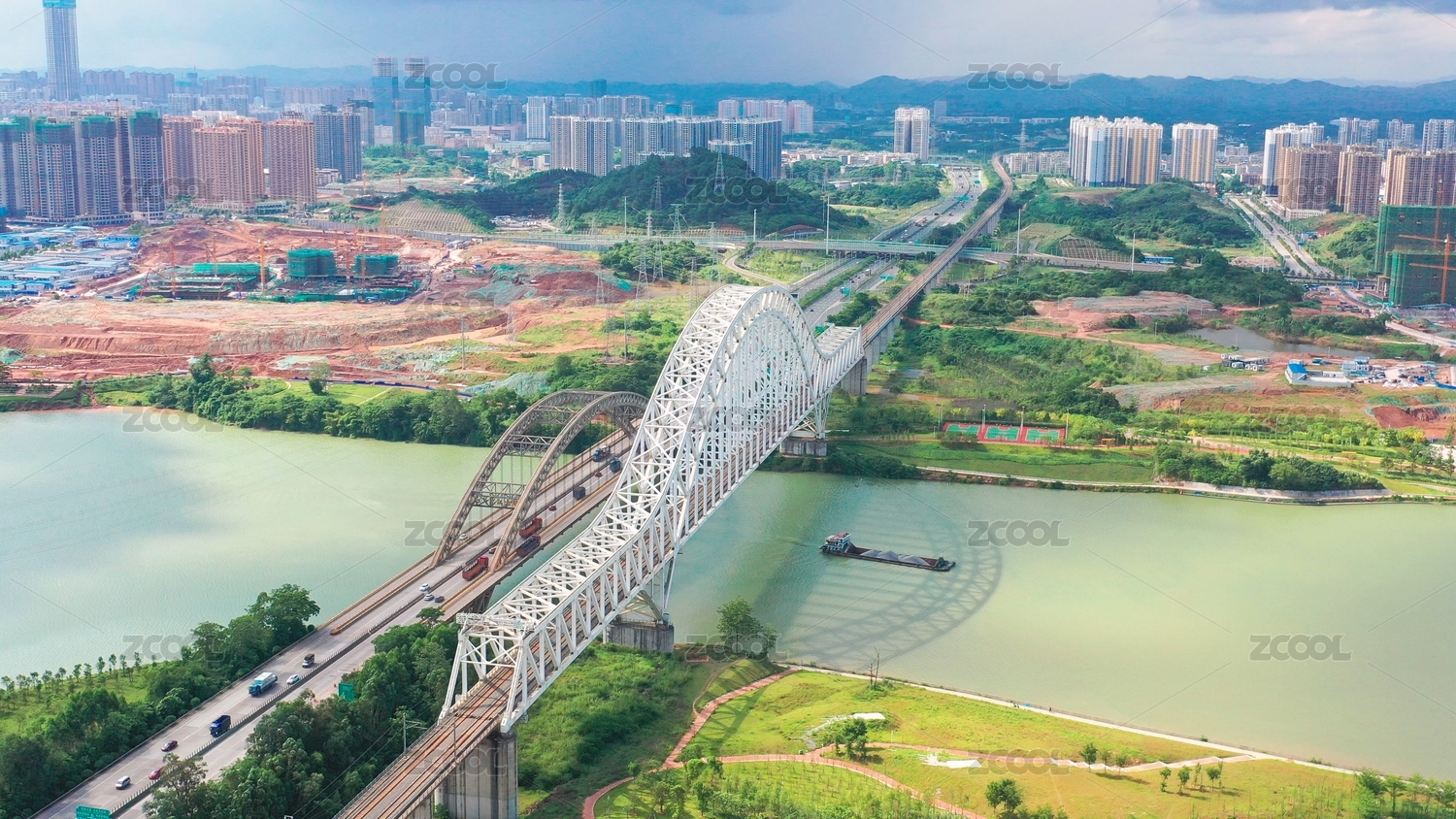 廣西省南寧邕江鐵路橋航拍風(fēng)光