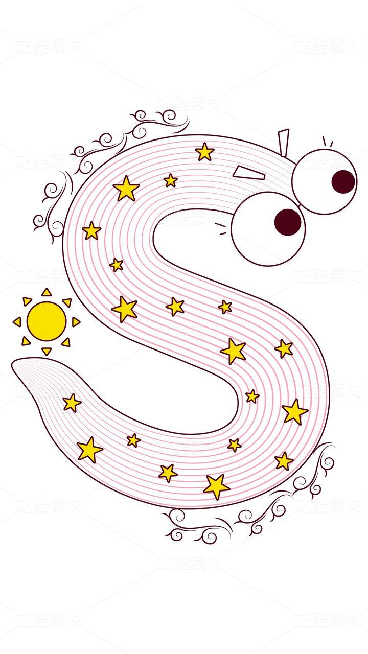 字母 S 的閃耀星空:星星與太陽(yáng)啟蒙插畫