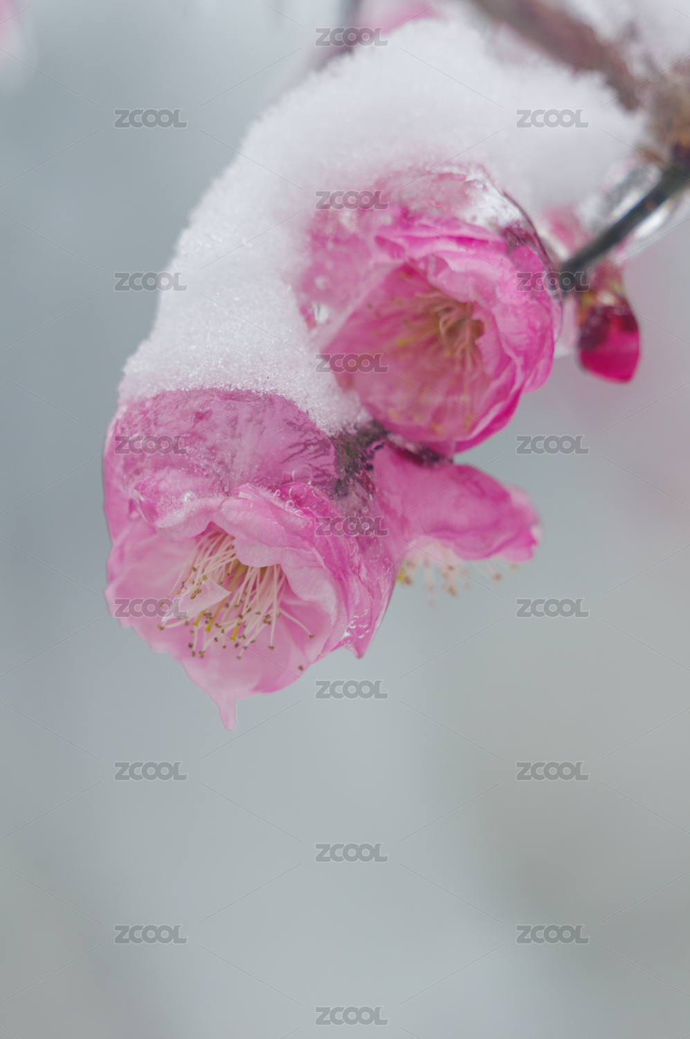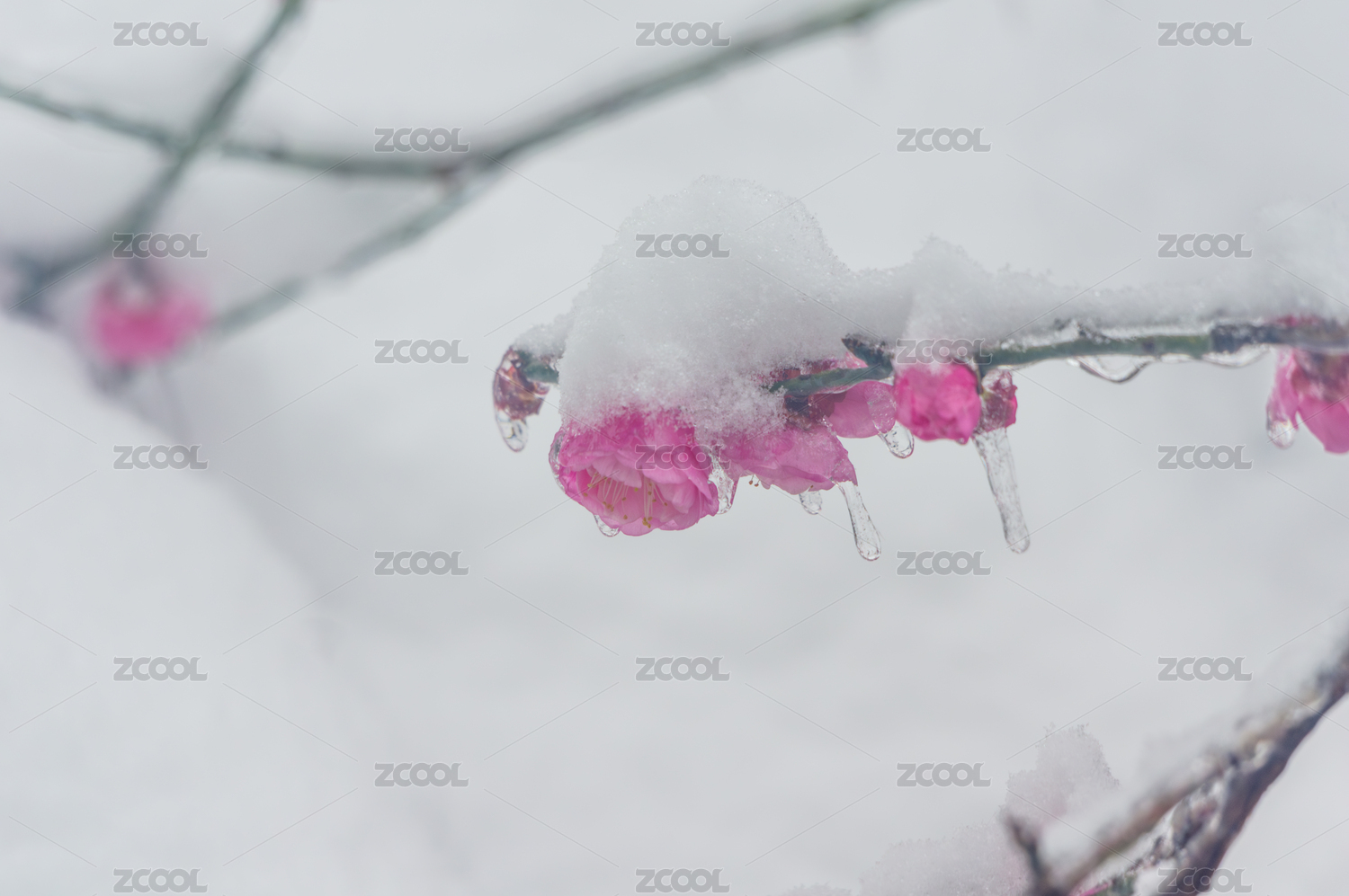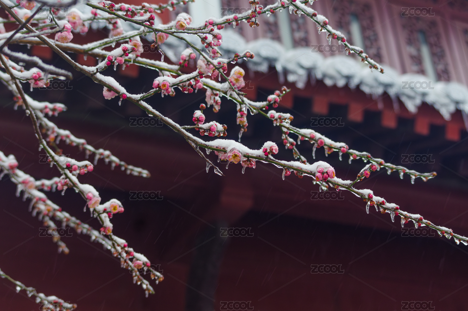 武漢東湖梅園雪中梅花盛開