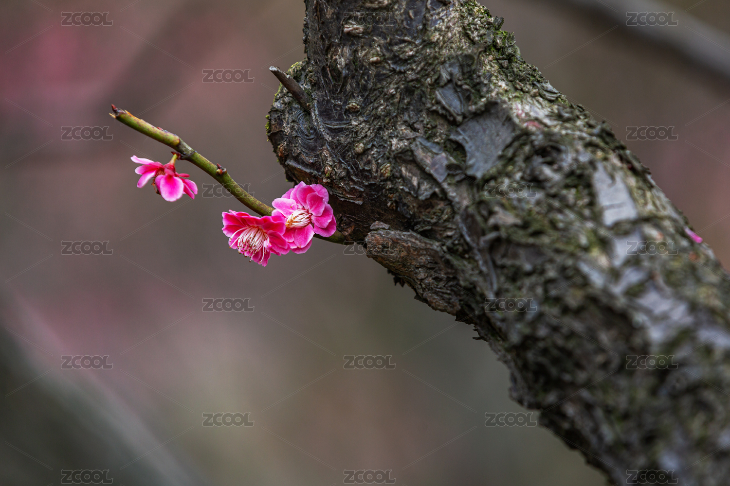 一枝紅梅粉艷的花瓣清晰可見凌寒獨開雅致
