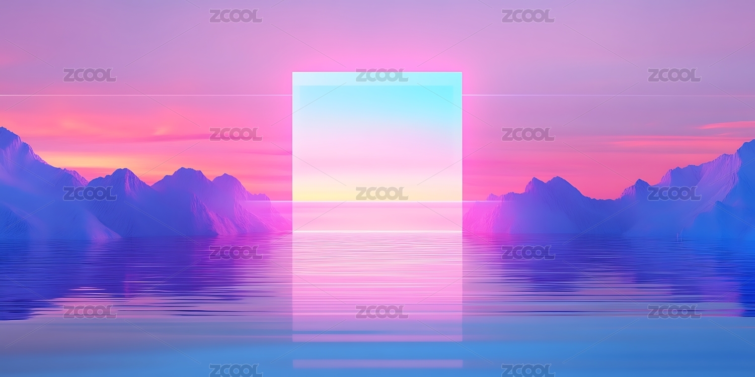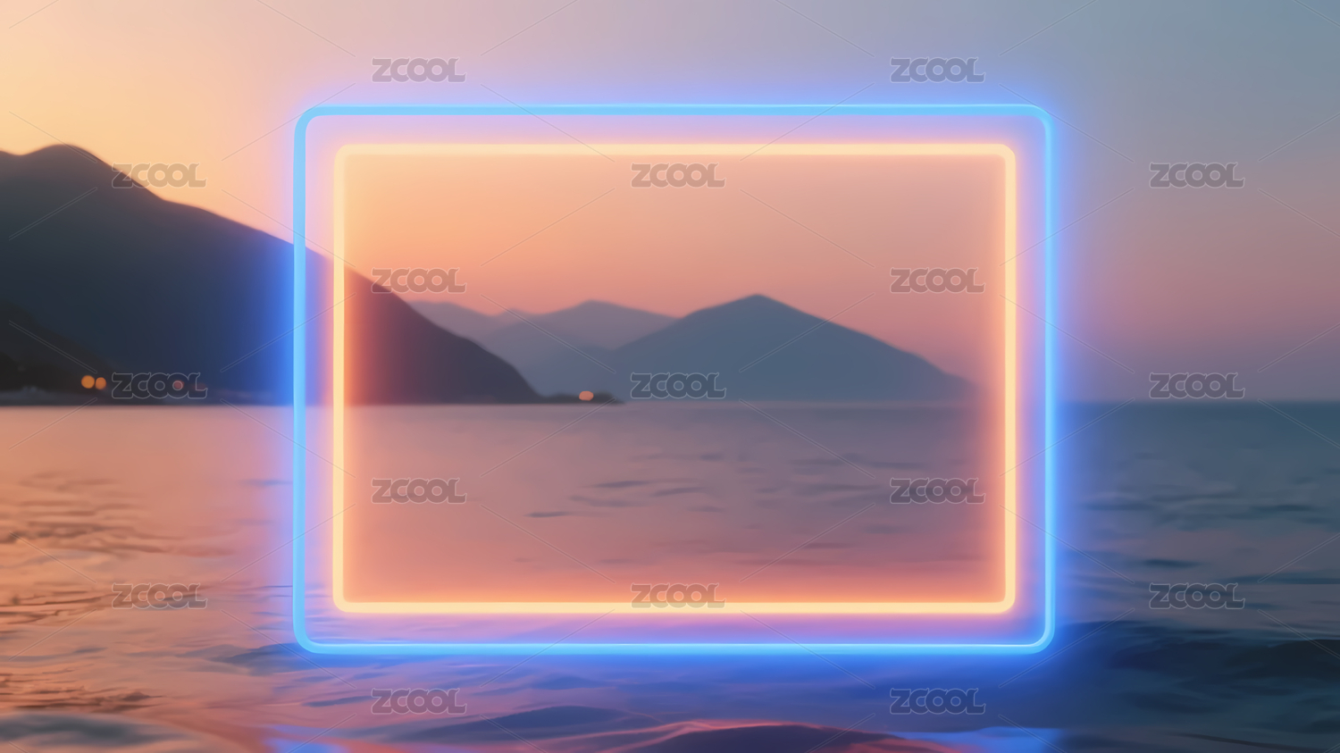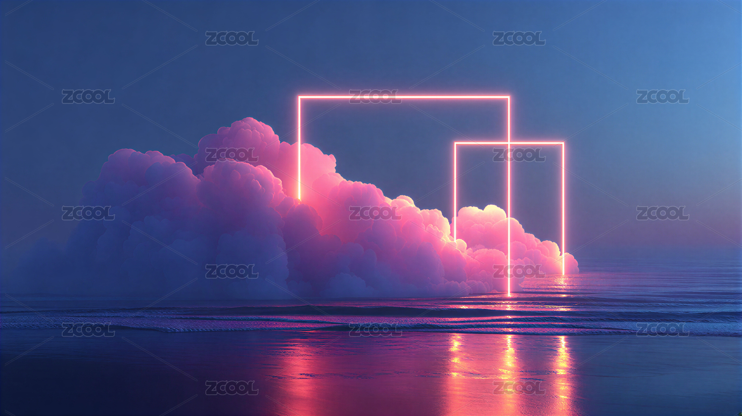 霓虹框與粉云的夢幻海景