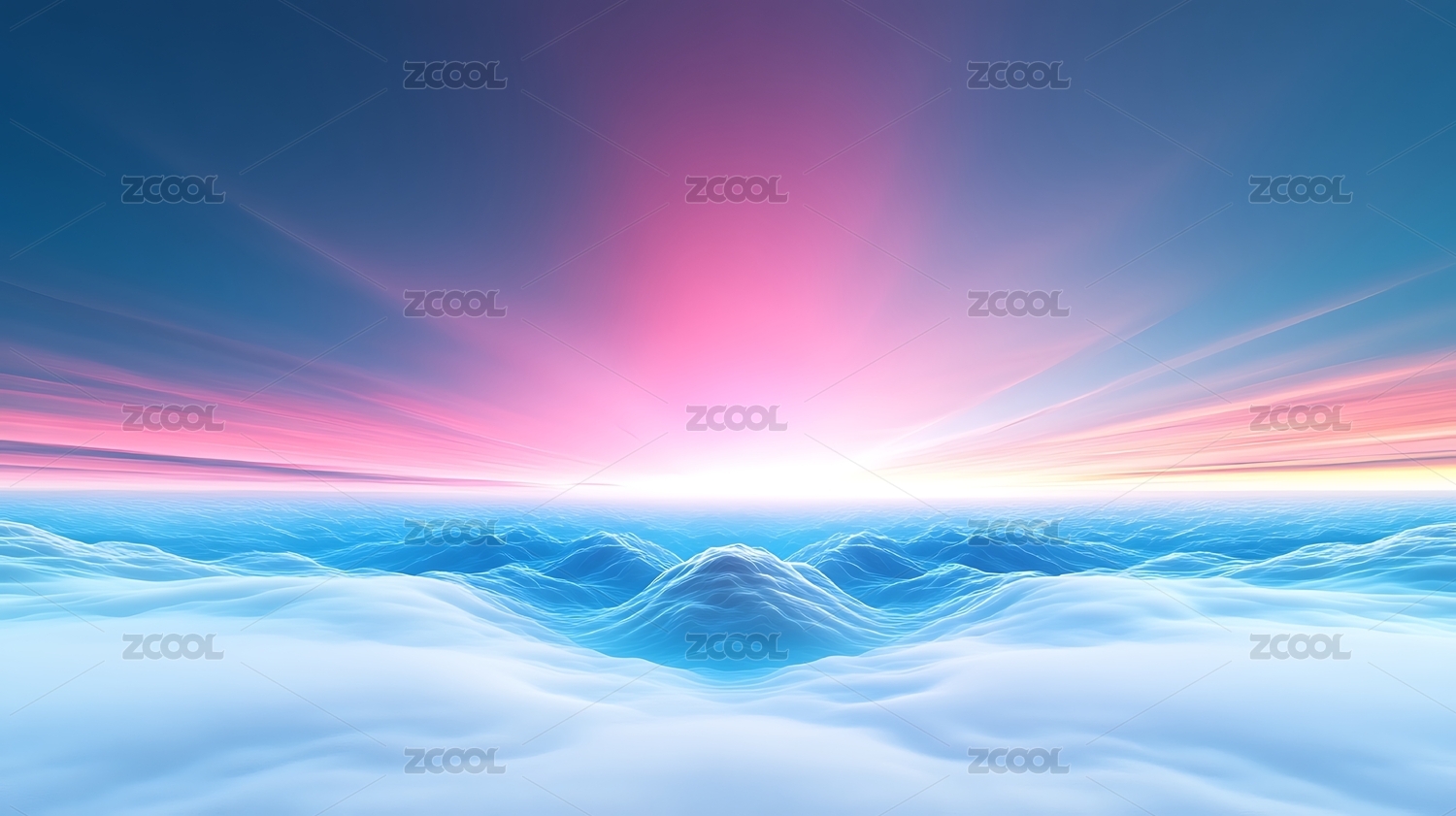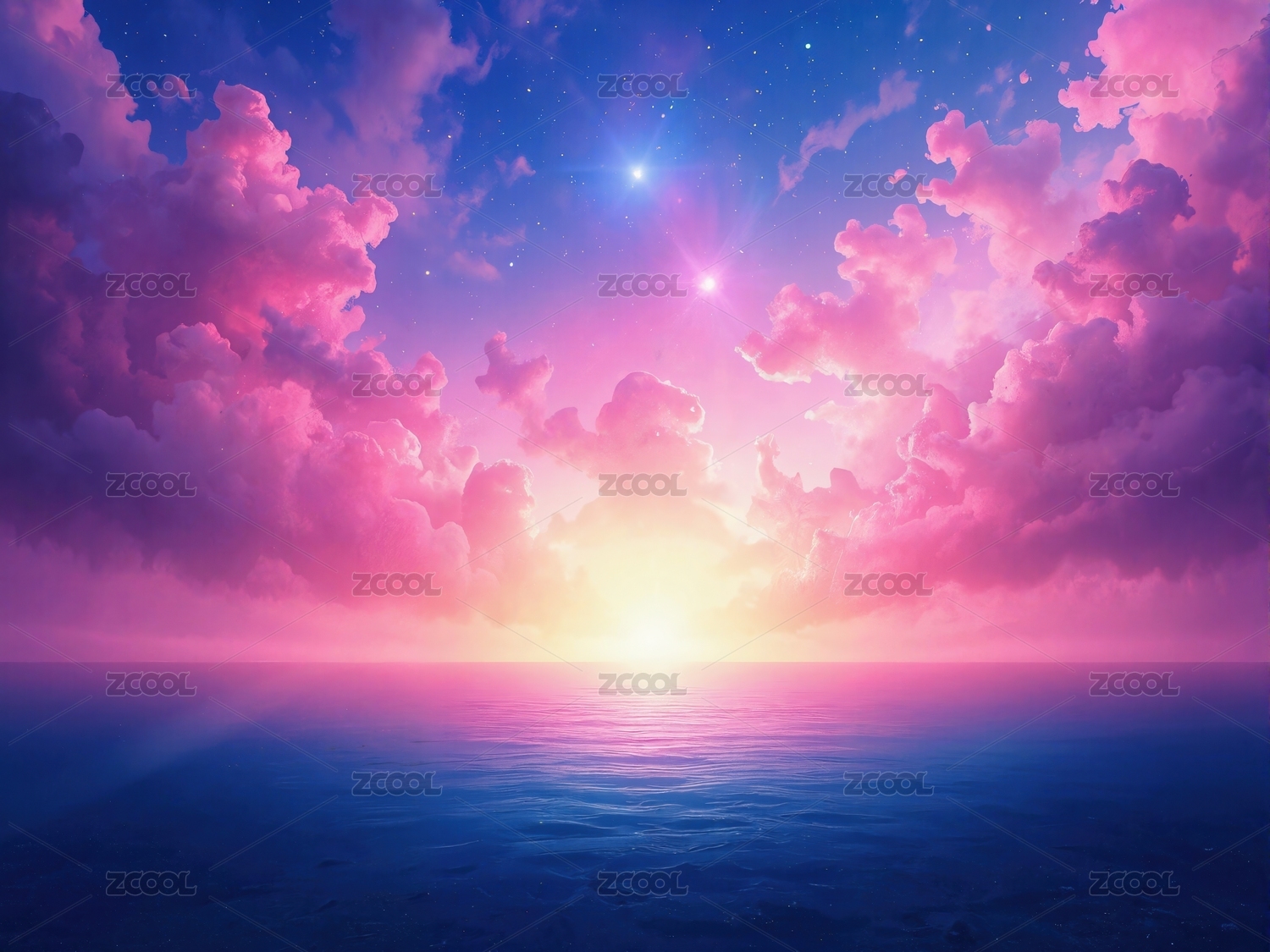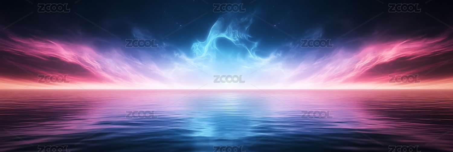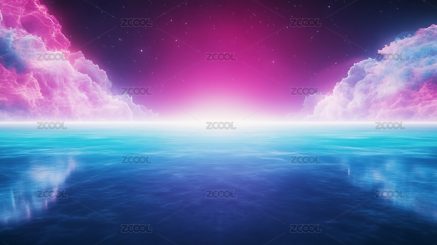 霓虹框與粉云的夢幻海景