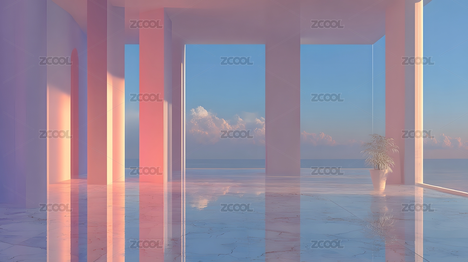 夢幻海景建筑光影倒影唯美場景