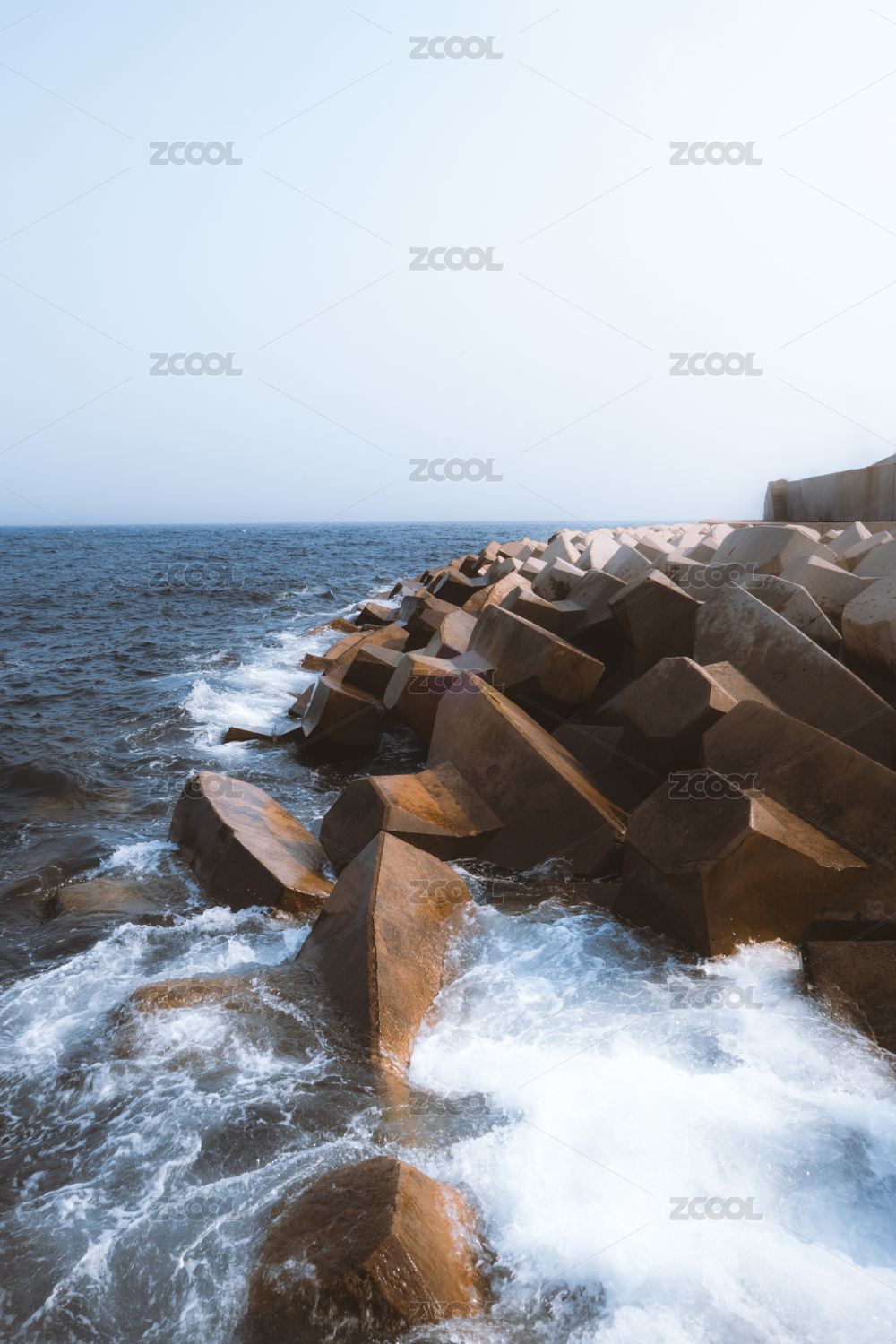 夢幻海浪沖刷防波石治愈海景壁紙背景素材