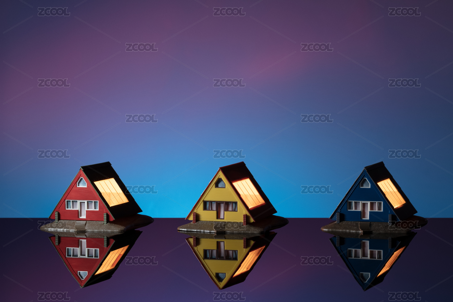 夜晚夢幻天窗海景房彩色房子