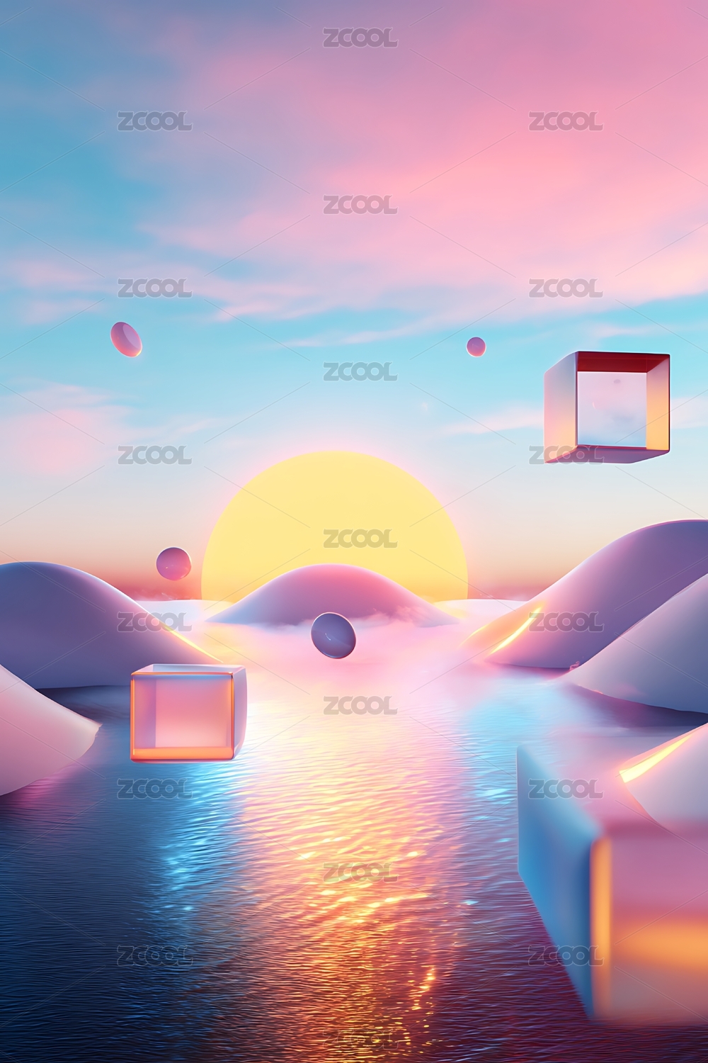 夢幻海景幾何漂浮
