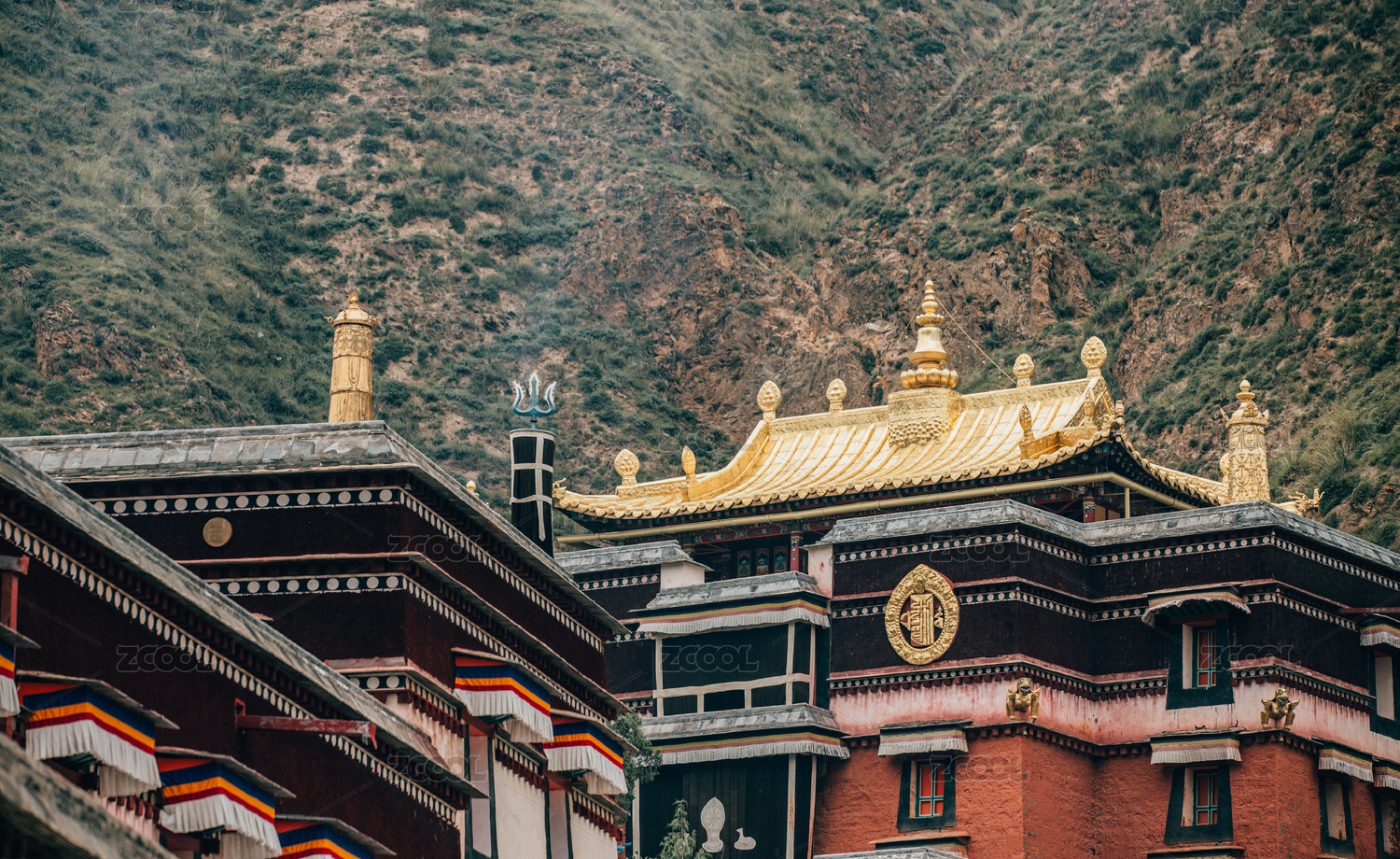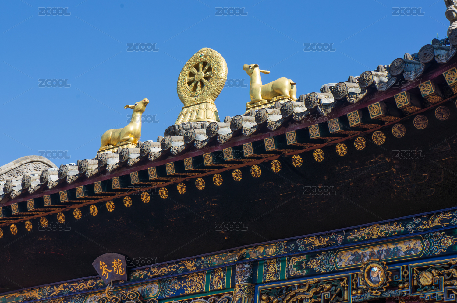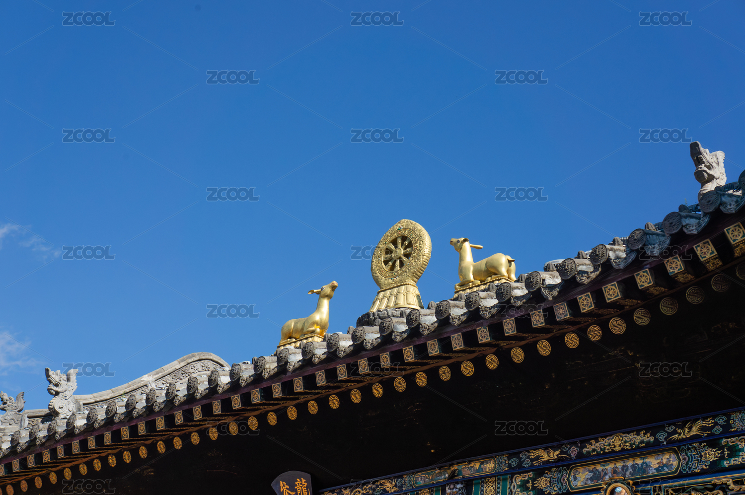 山西五臺山藏式古建筑屋頂金鹿輪裝飾