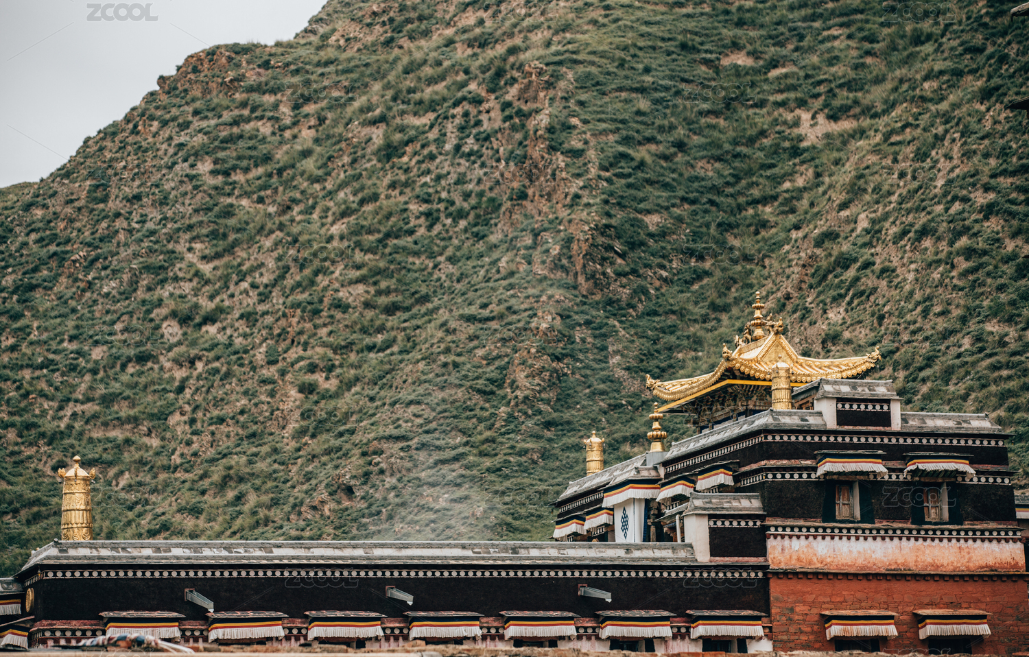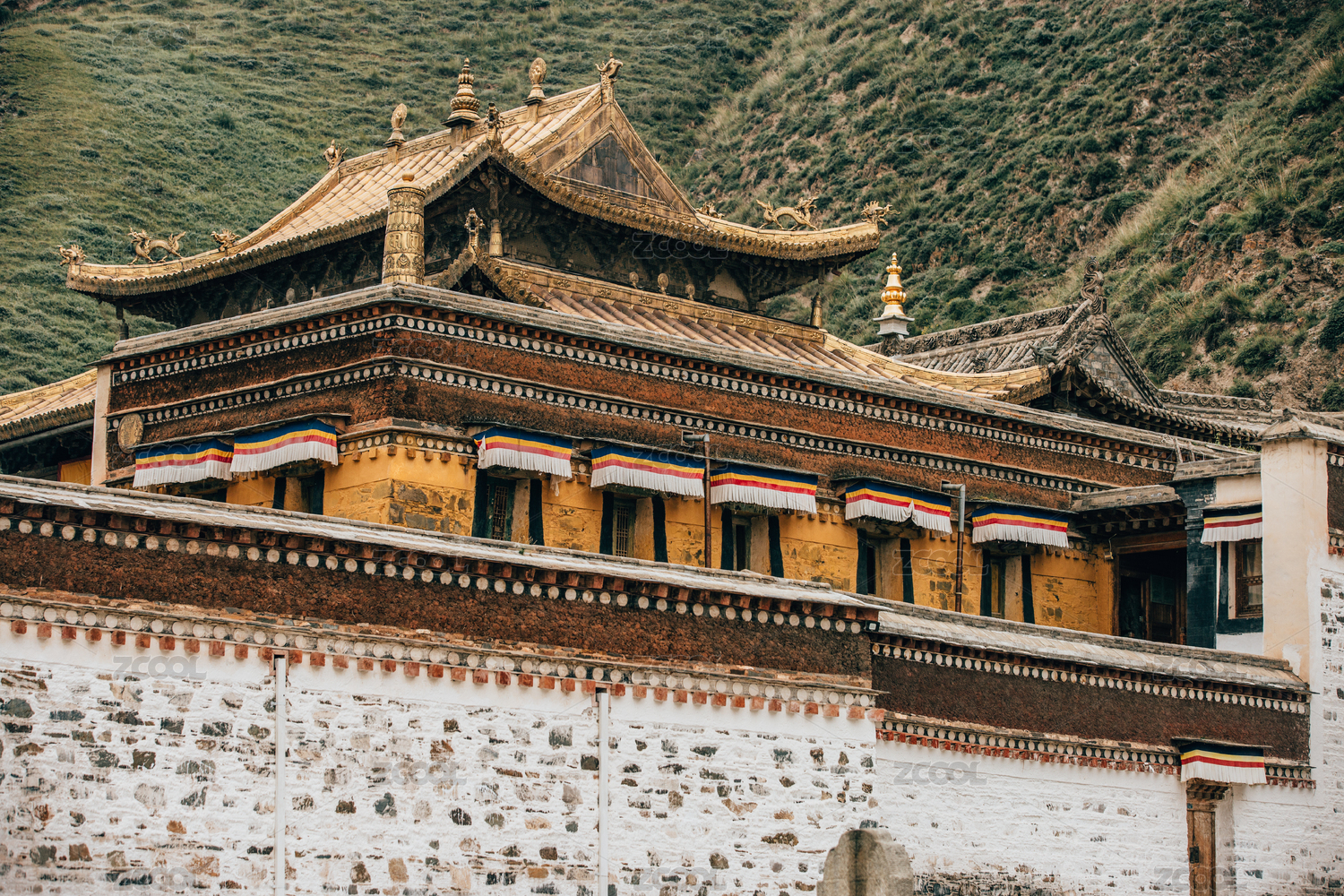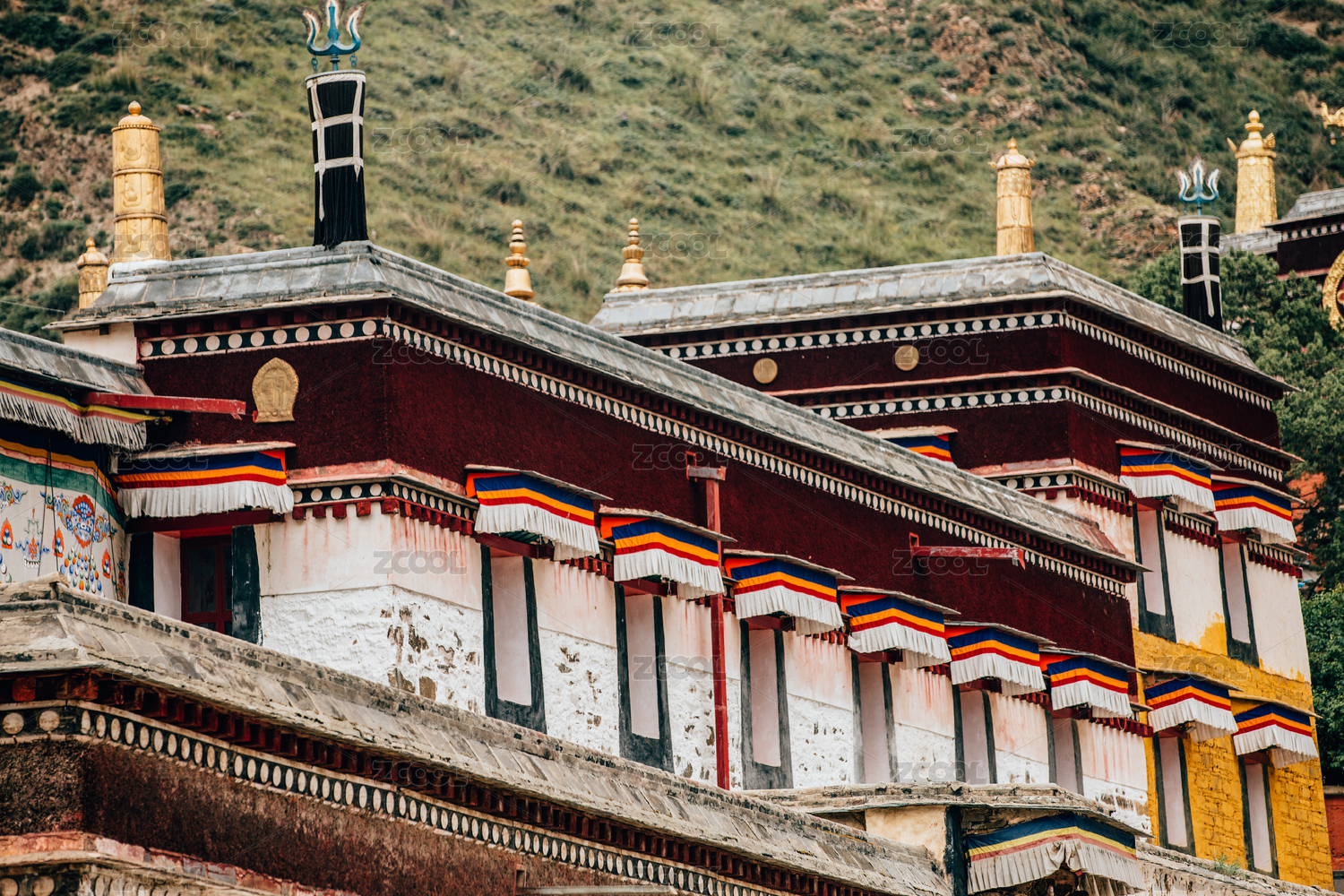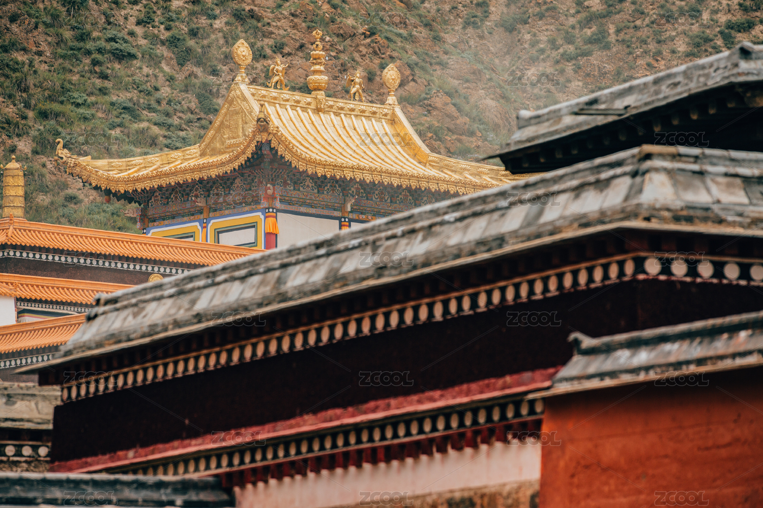 山西五臺山藏式古建筑屋頂金鹿輪裝飾