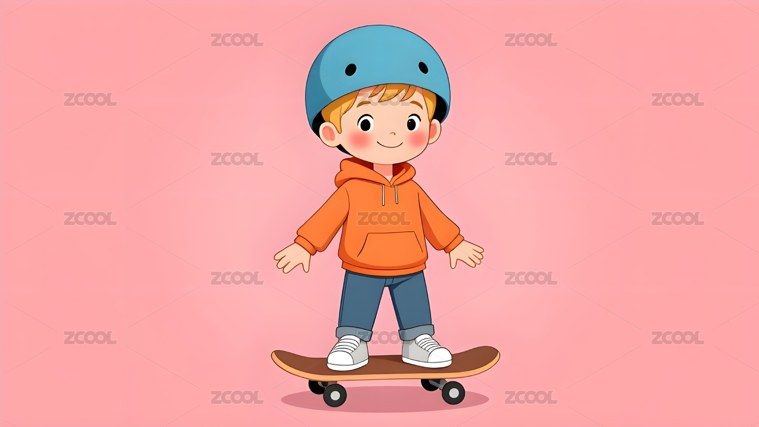 活力四射的卡通滑板男孩