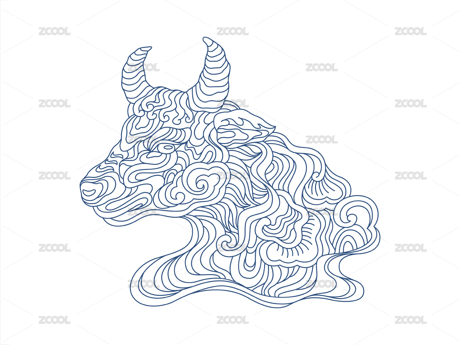 新年牛圖案中國(guó)風(fēng)描邊插畫(huà)