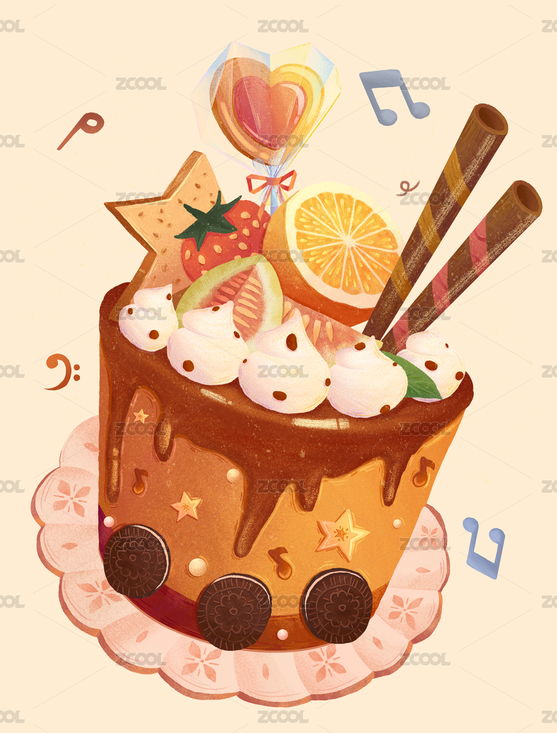 面包卷小船帶甜點(diǎn)潮流插畫(huà)