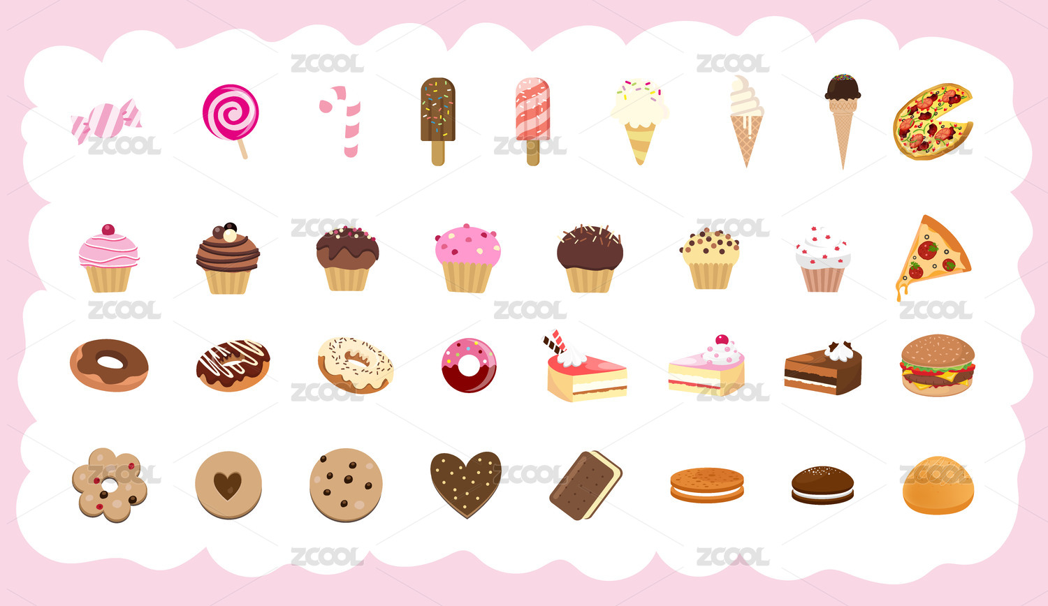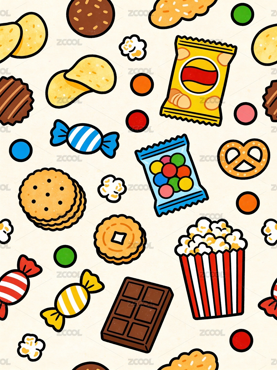 零食組成愛(ài)心形狀矢量插畫(huà)
