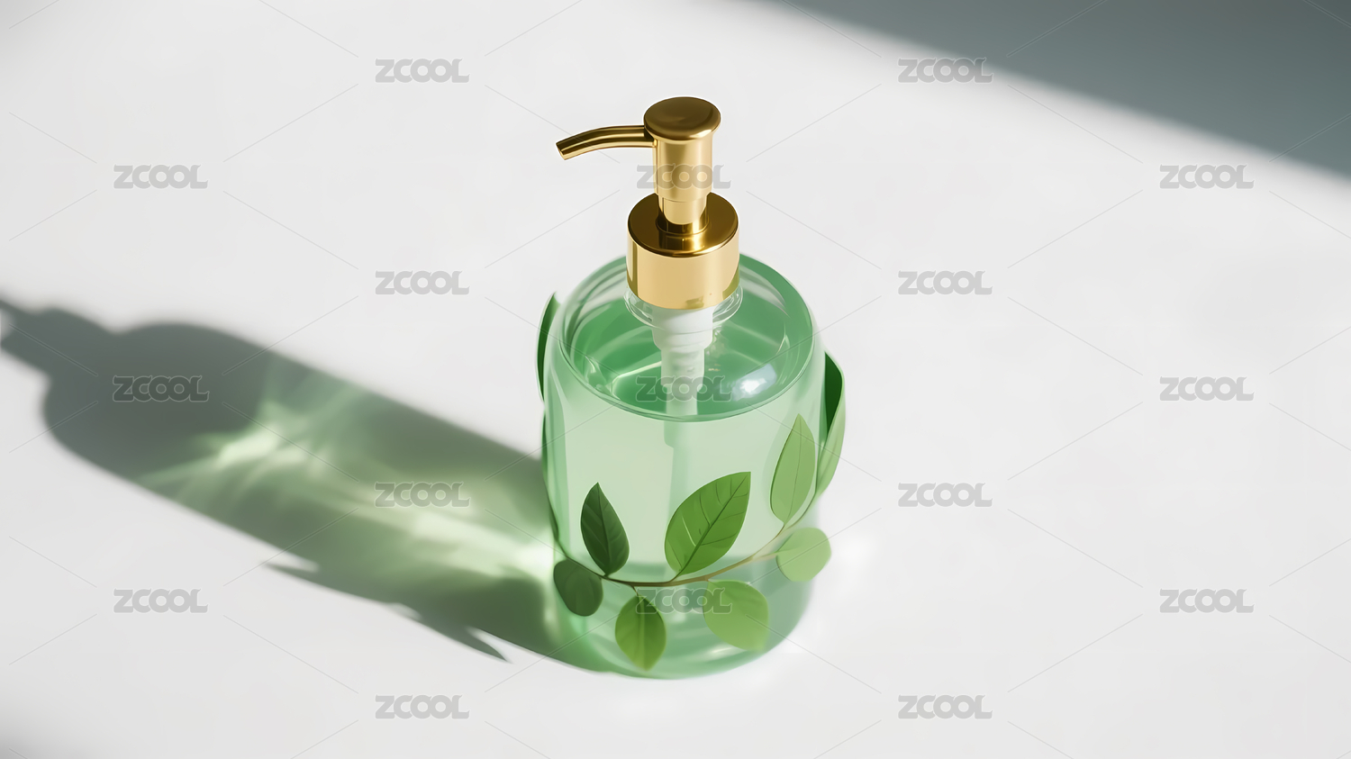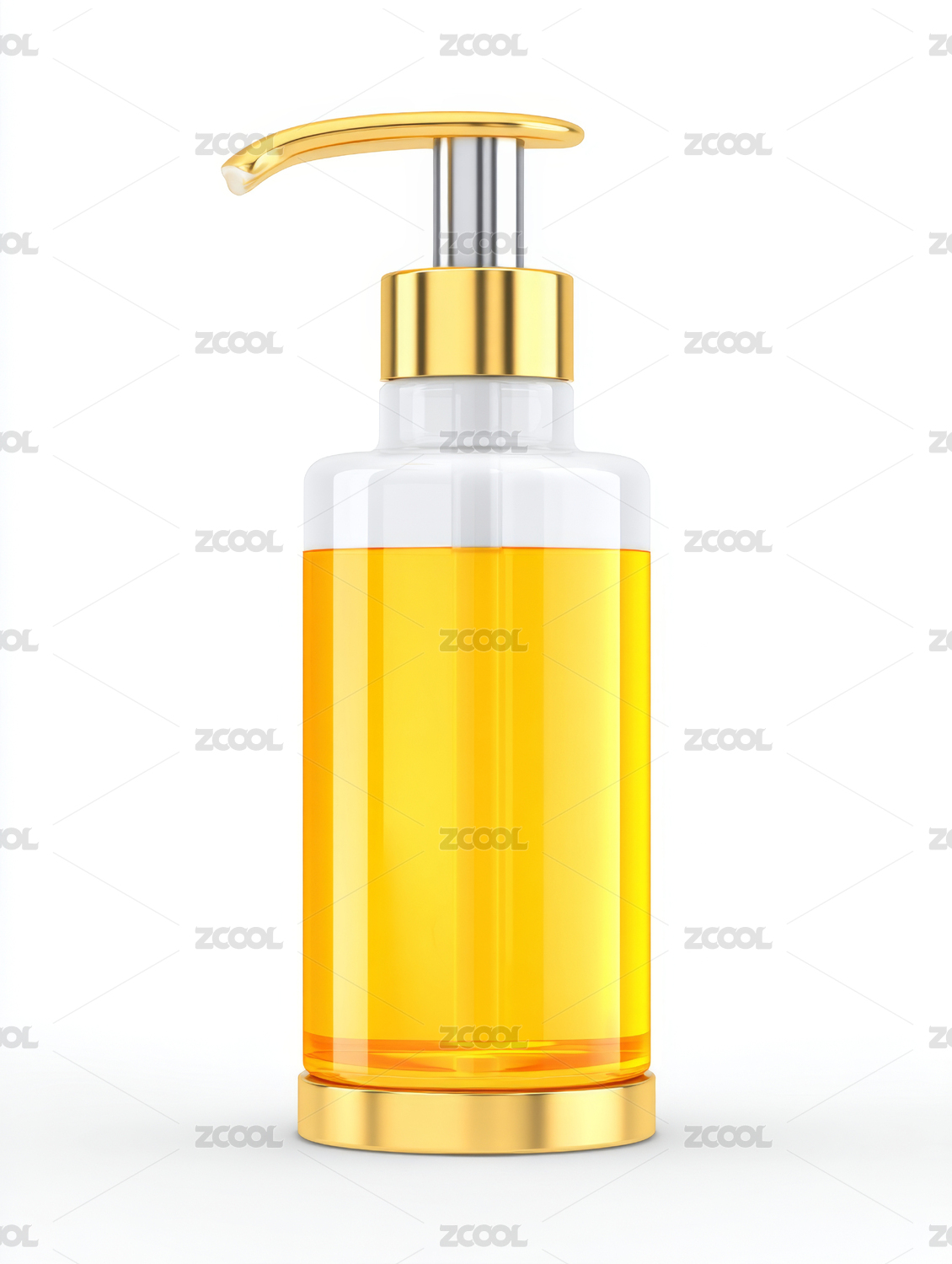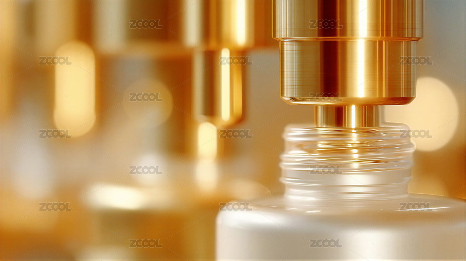 金色泵頭與透明瓶身的美妝容器特寫(xiě)