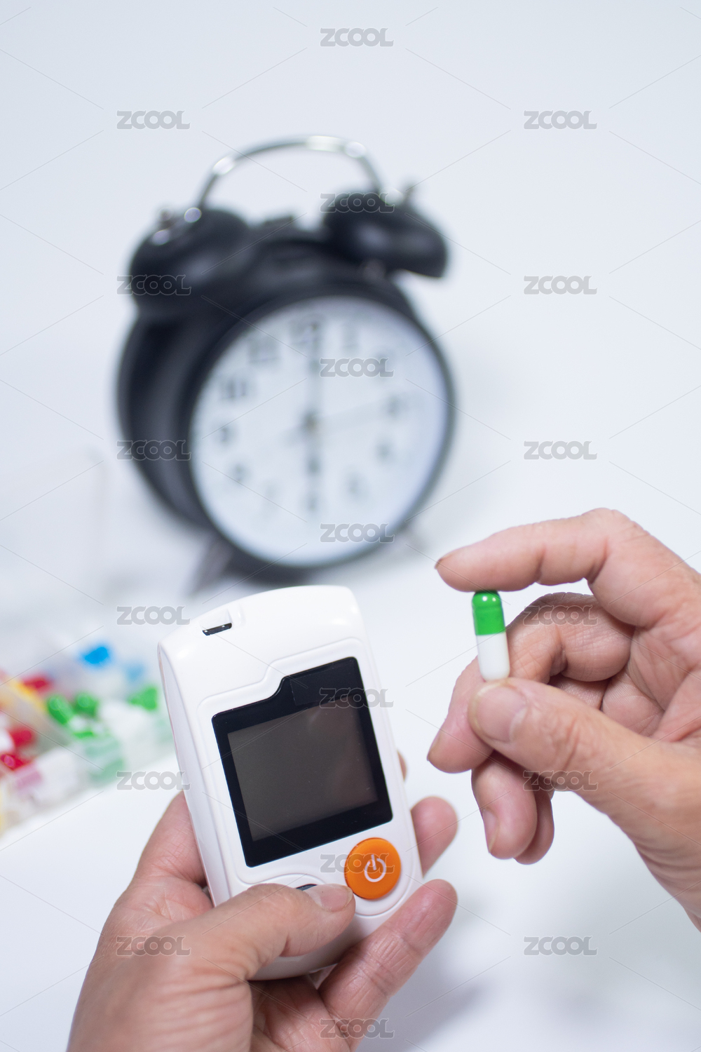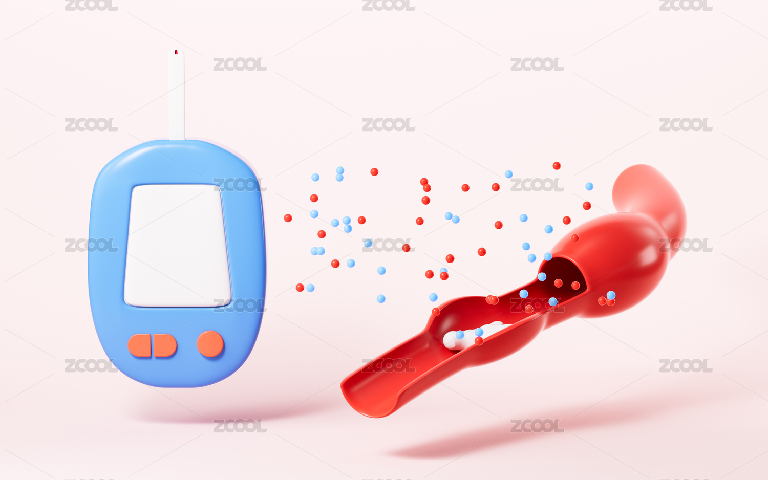 卡通血糖儀血糖監(jiān)測概念3D渲染
