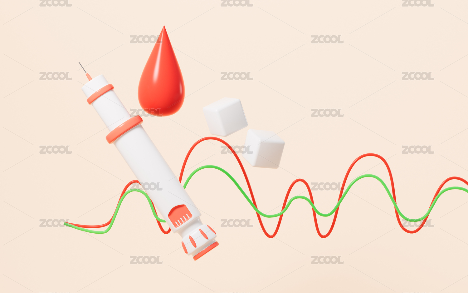 胰島素筆和血糖檢測曲線3D渲染