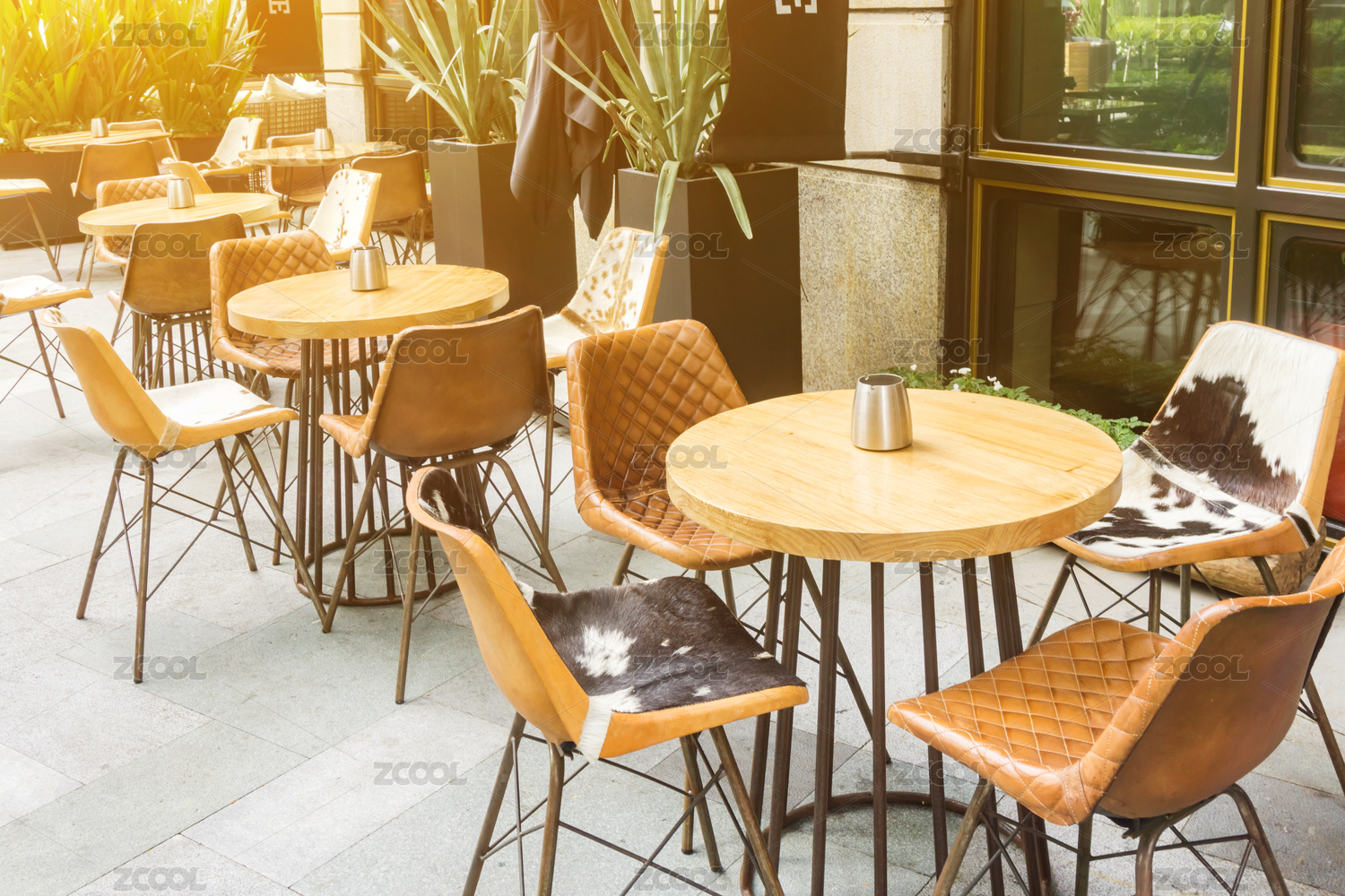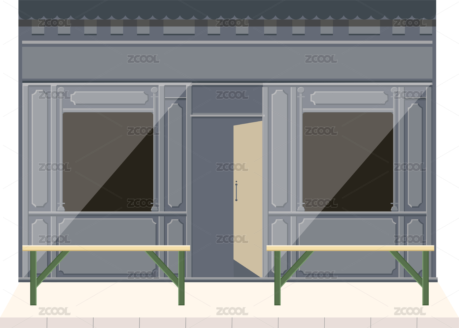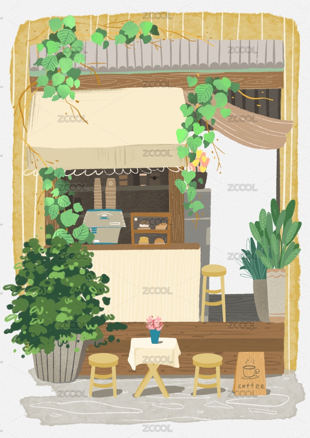 插畫扁平咖啡店鋪門口商業(yè)戶外椅子窗戶