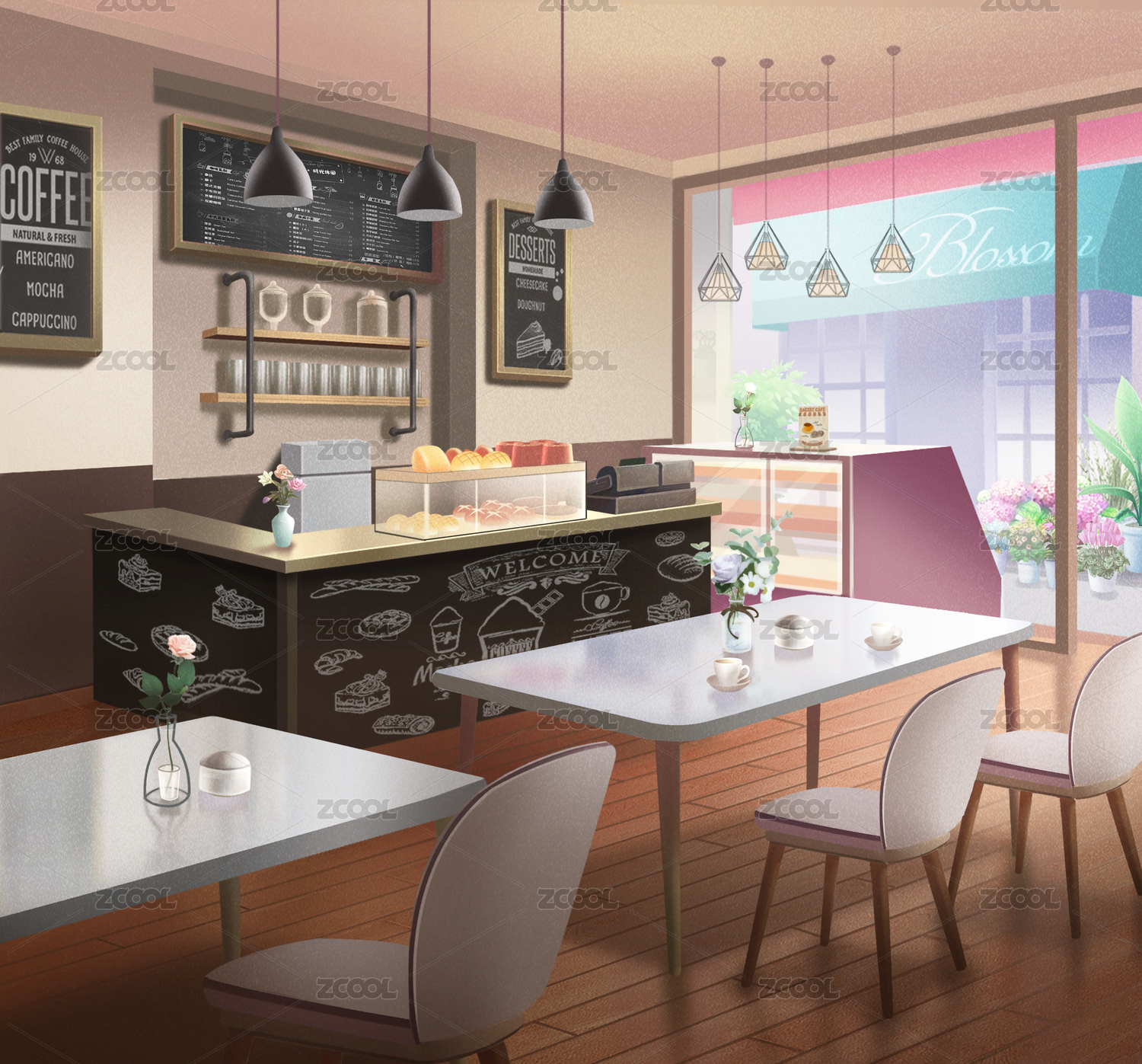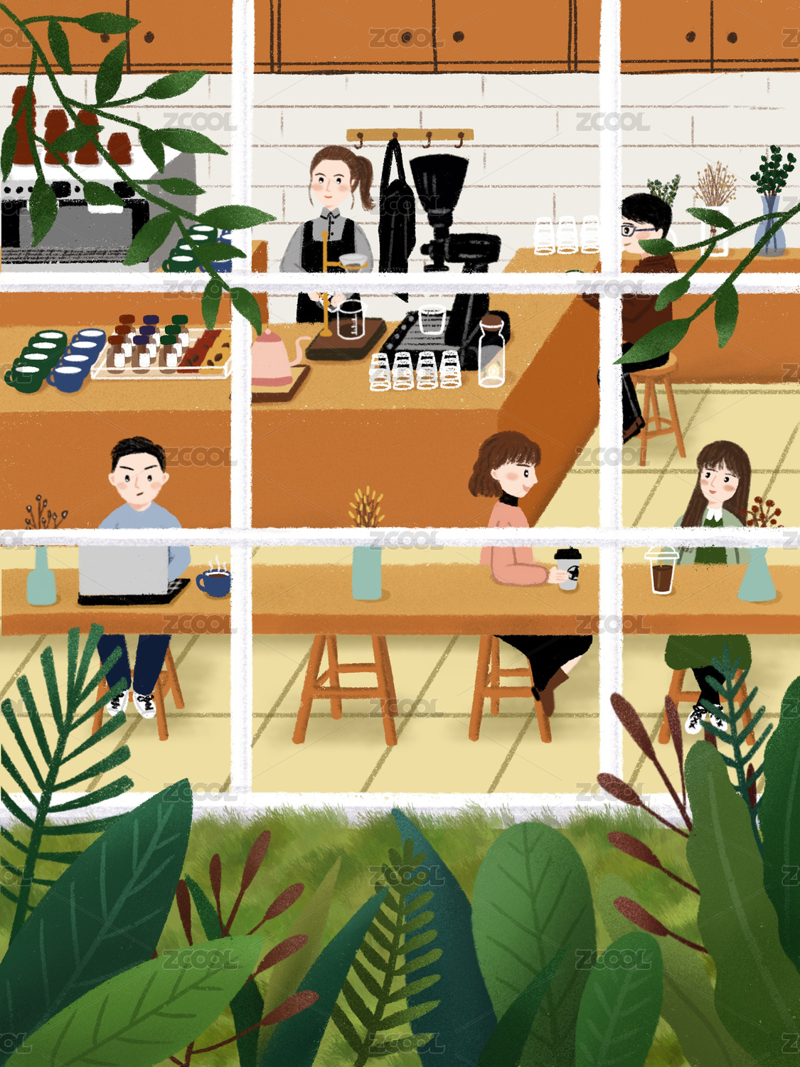 玻璃落地窗咖啡店午后悠閑時(shí)光
